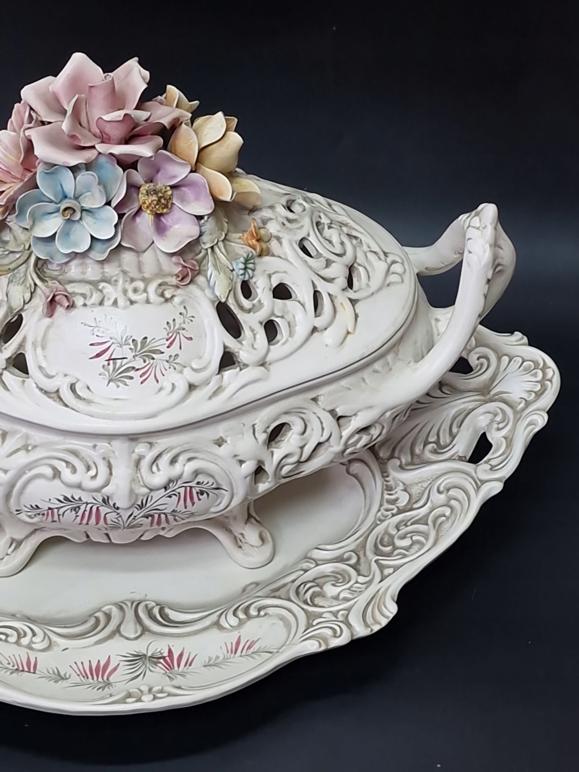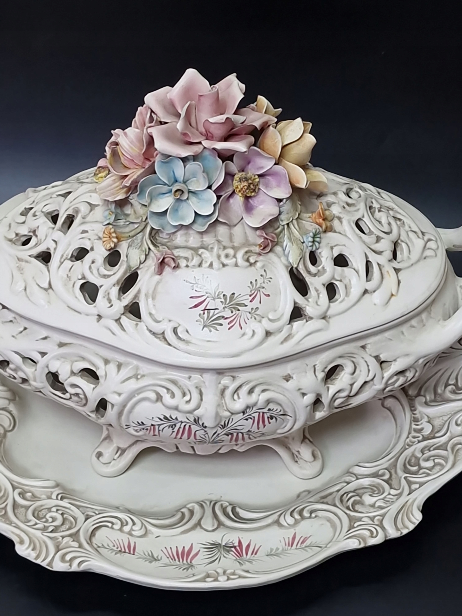 Накрыть богато украшенные красочными деликатными фарфоровыми цветами.
