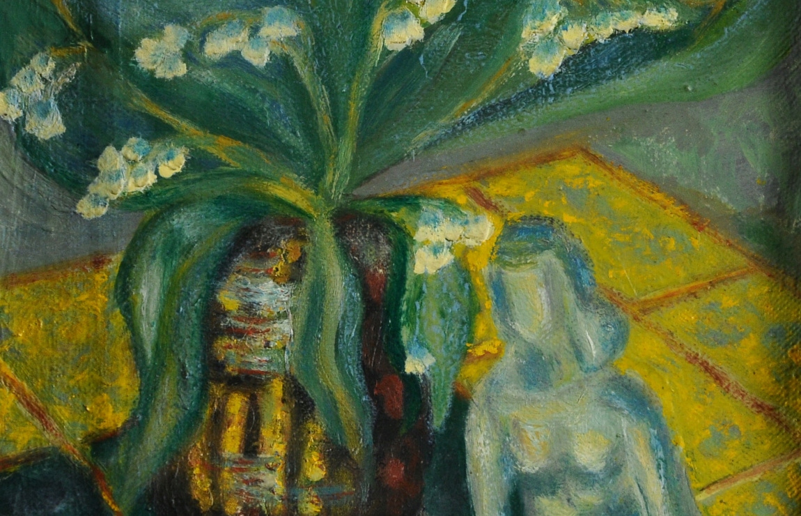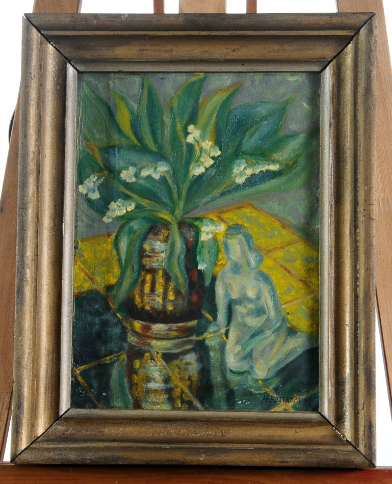 H. Edstrom "Натюрморт с фигуркой" Старая масляная живопись 1941 !!!