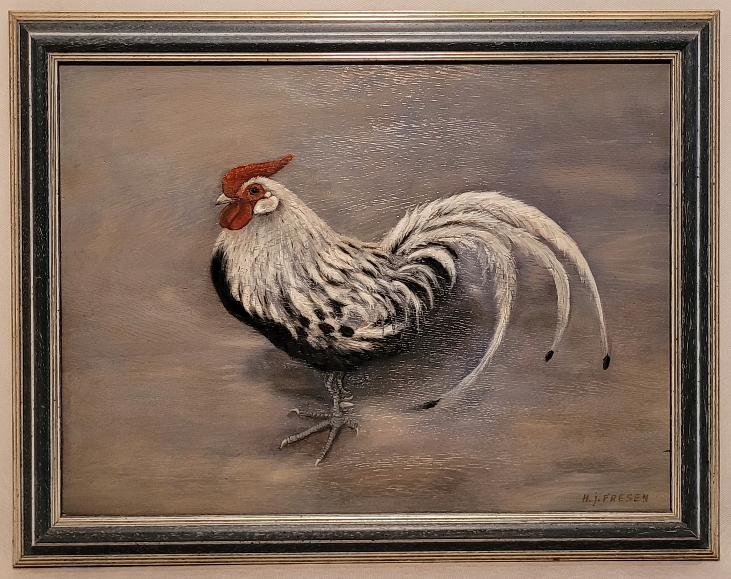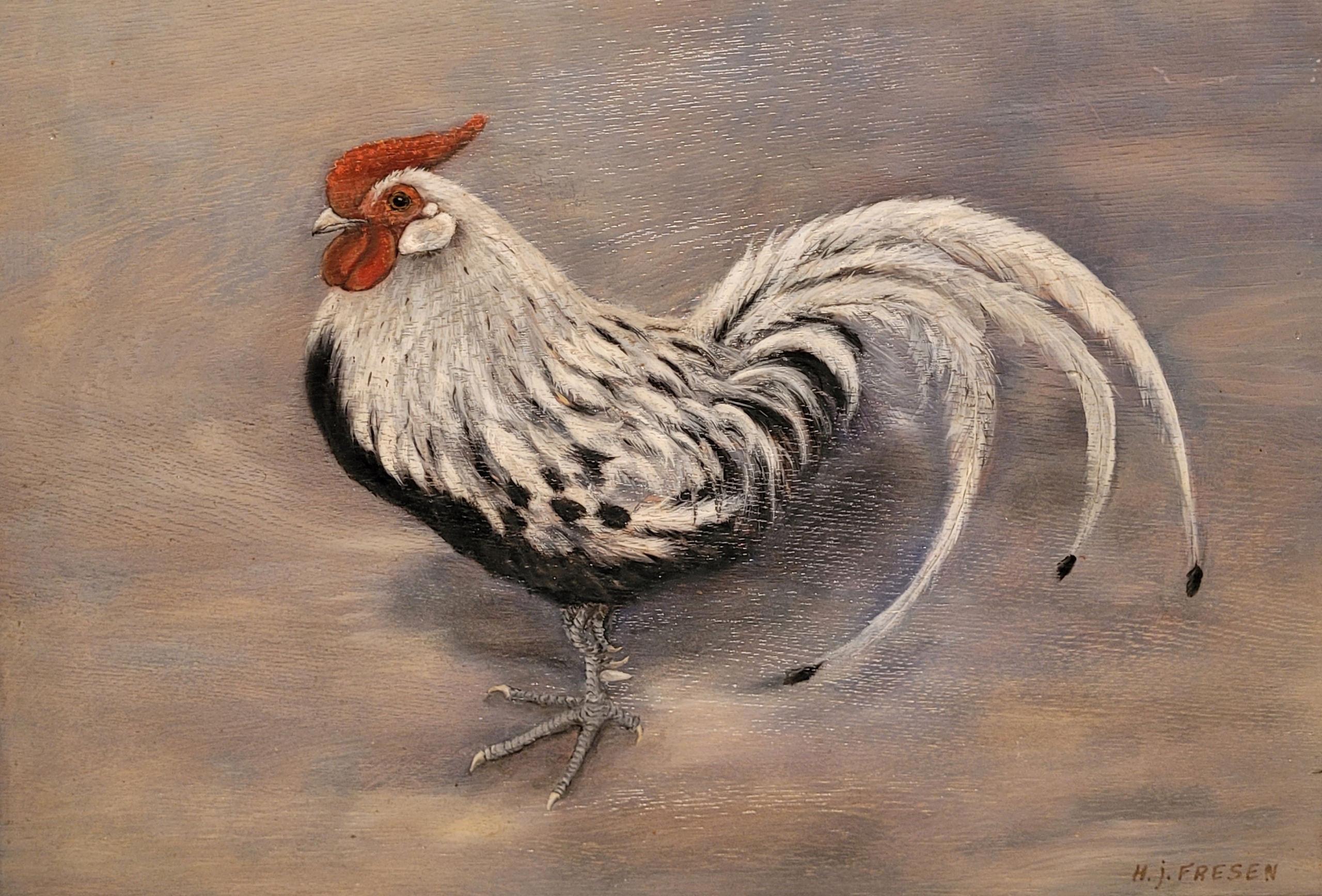 H.J.Fresen - «Петух», красивая масляная картина.
