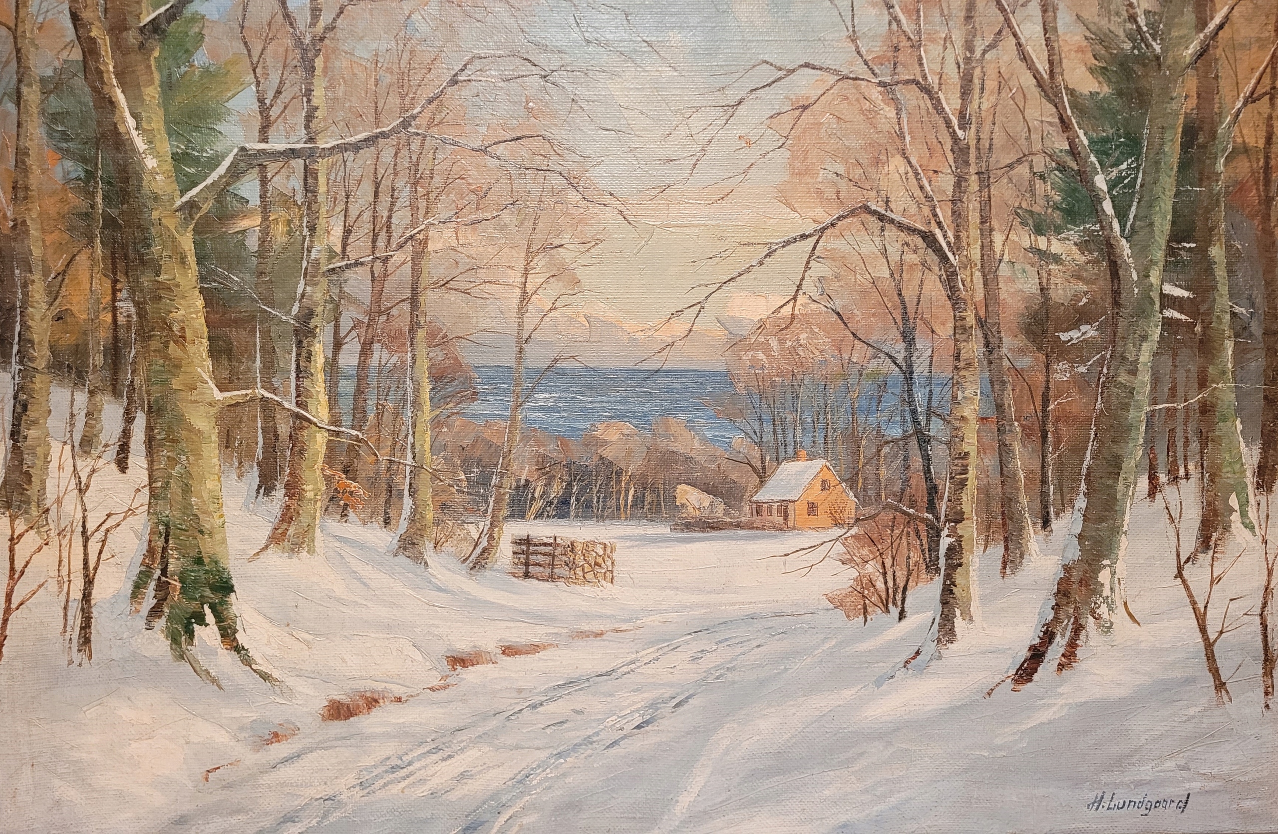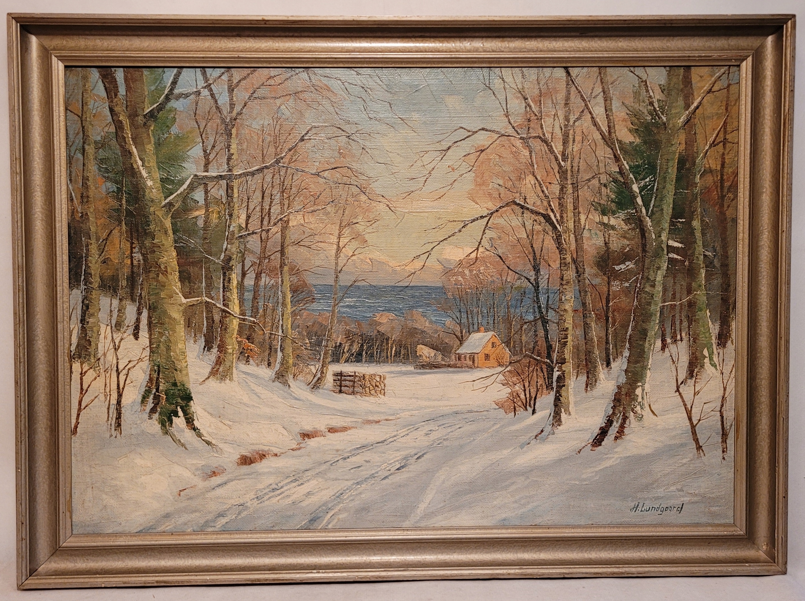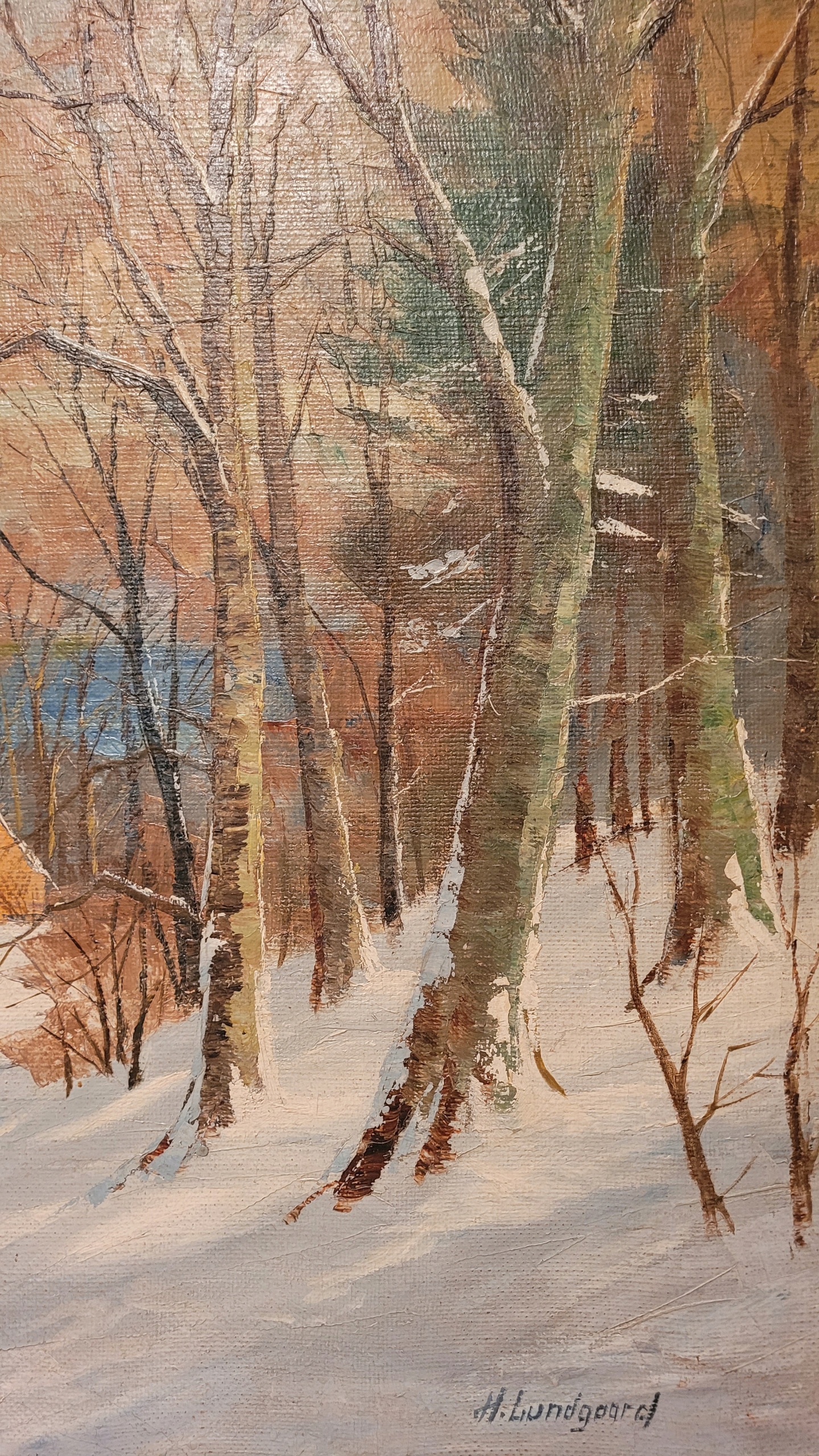 H.Lundgaard - «Зимний пейзаж», старая нефтяная картина.