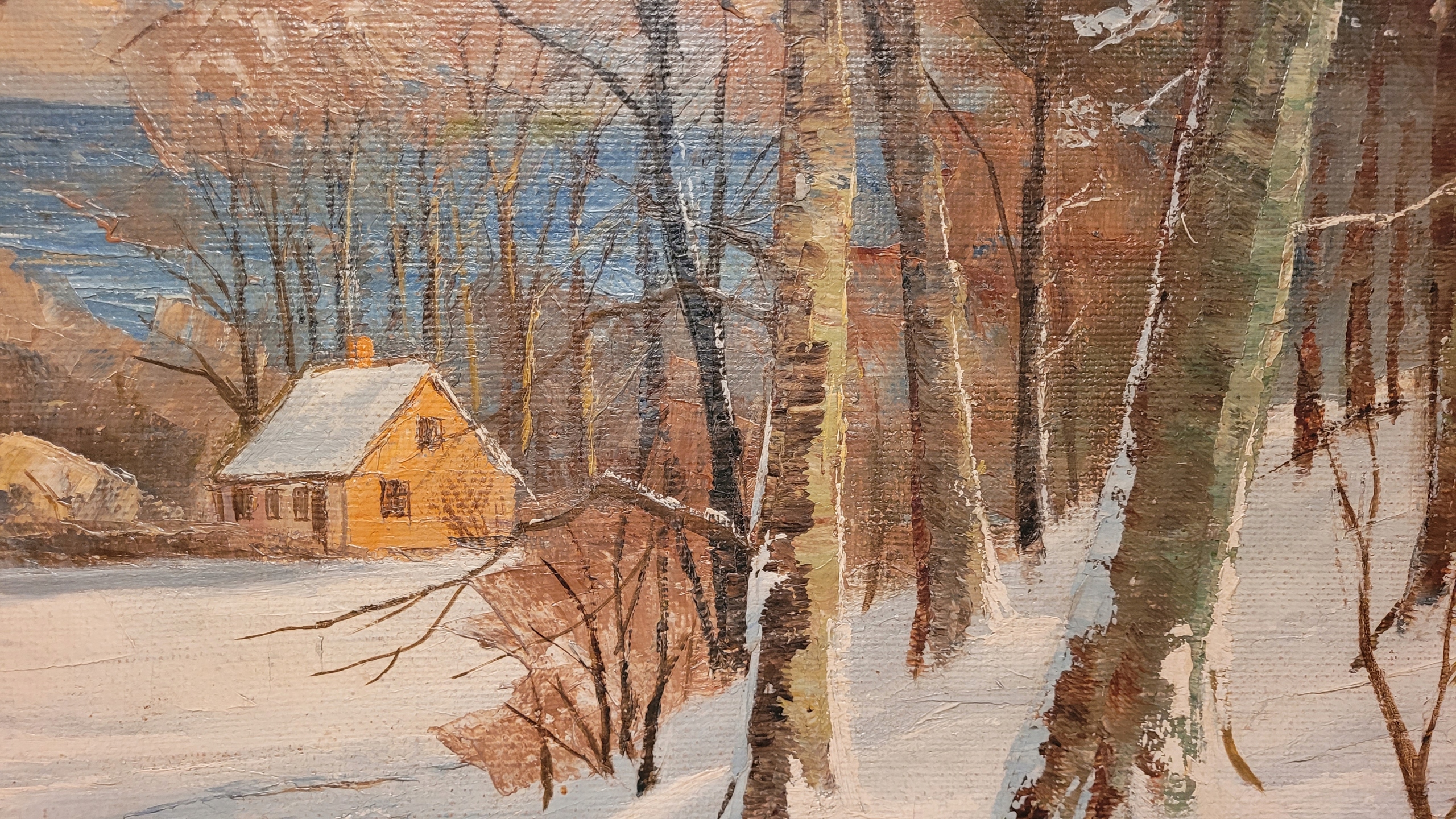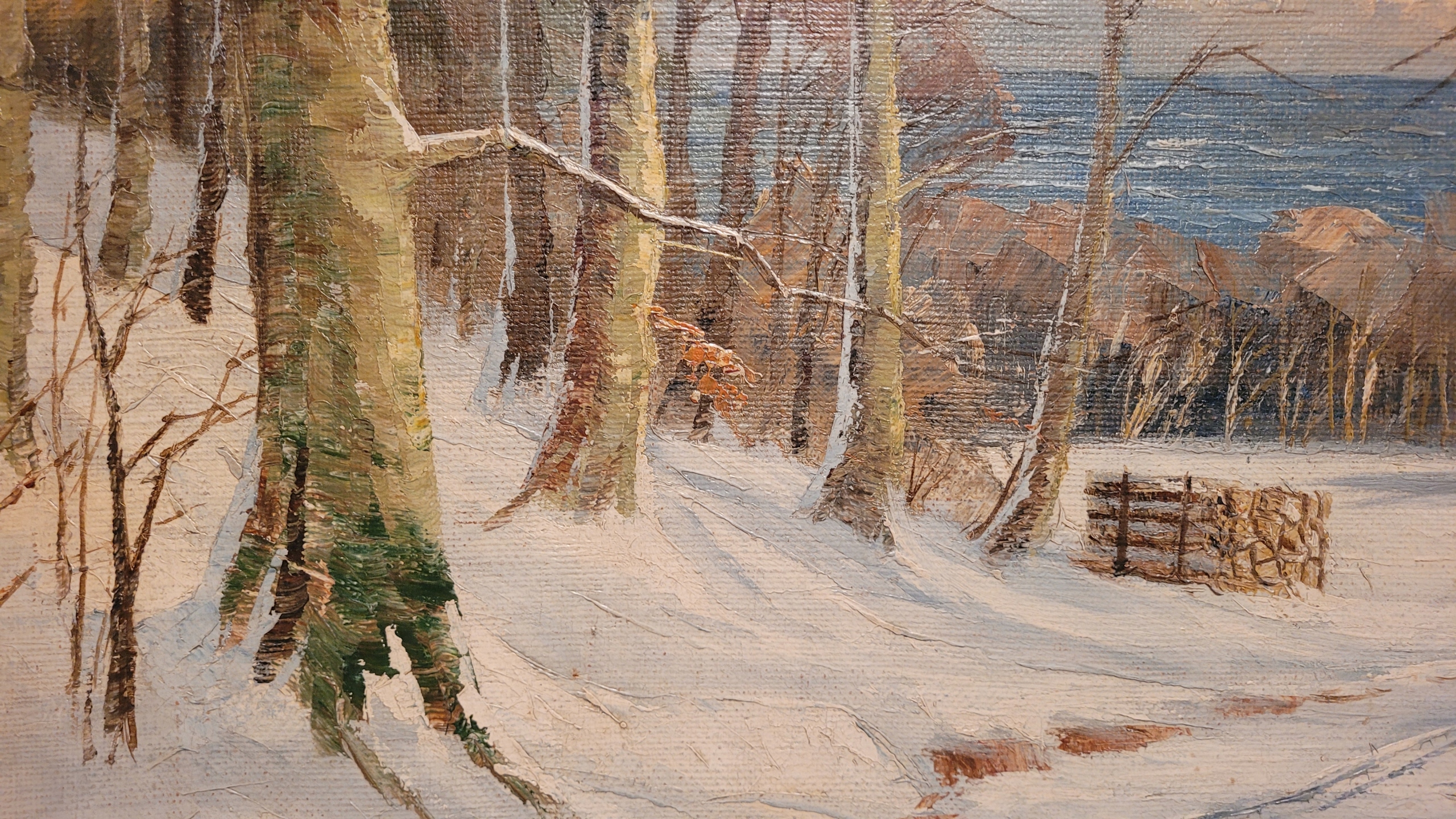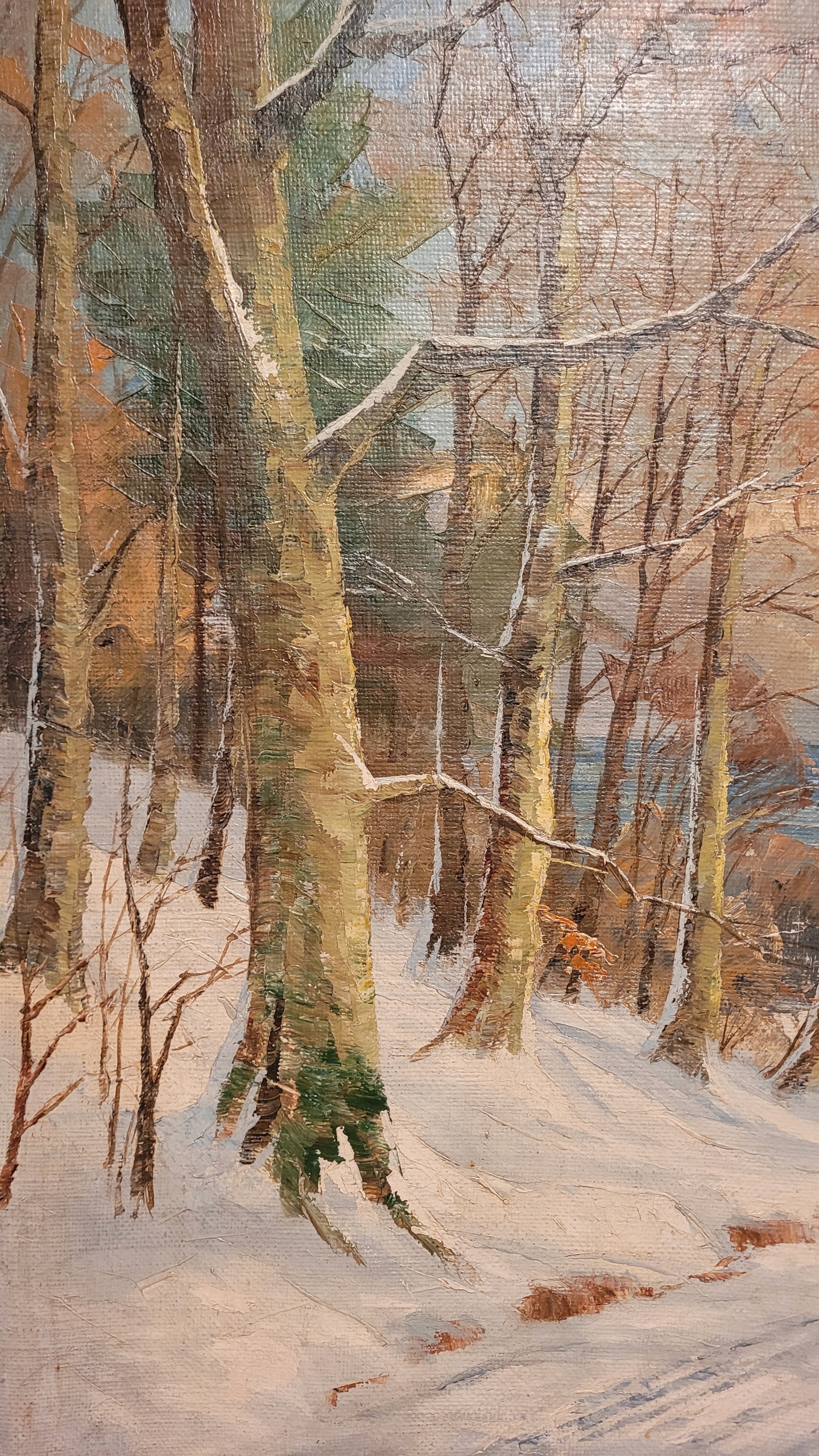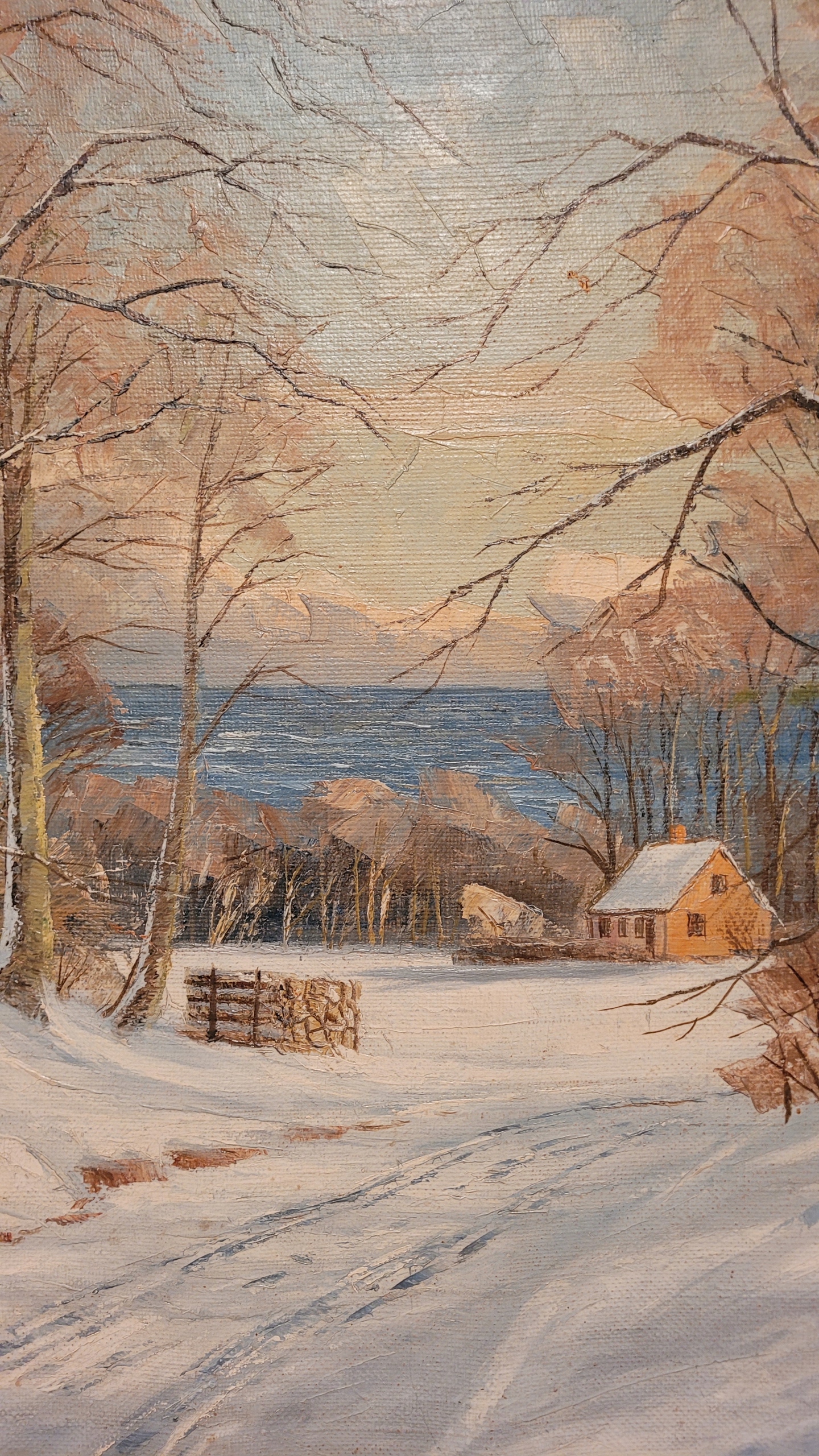 H.Lundgaard - «Зимний пейзаж», старая нефтяная картина.
