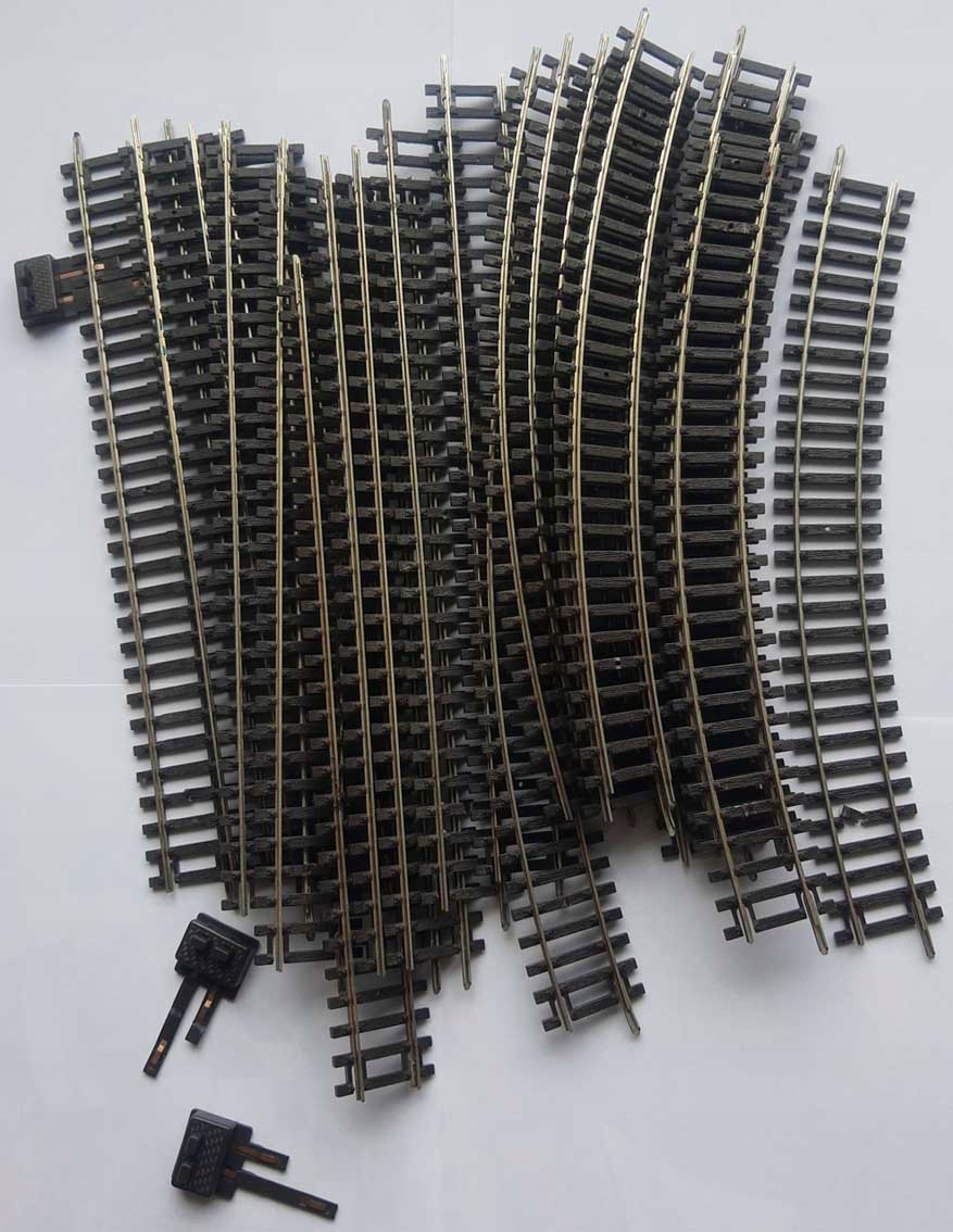 Шкала H0. Гусеницы Pico A-gleis - лом - всего 41 элемент с отсутствующими и поврежденными элементами - Гусеницы изогнутые R2 (всего 24 штуки) и прямые гусеницы G231 и G239 (всего 16 штук обоих размеров) - все элементы повреждены, с перегибами, отсутствующими разъемами или погнутыми разъемами, имеются следы клея и штифтов от разборки макета.