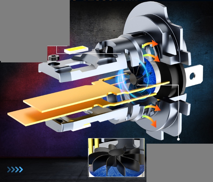 - ЕДИНСТВЕННЫЙ В РОДЕ, уникальный, компактный дизайн с турбинной системой охлаждения внутри корпуса, позволяющей устанавливать там, где другие светодиодные лампы не помещаются
