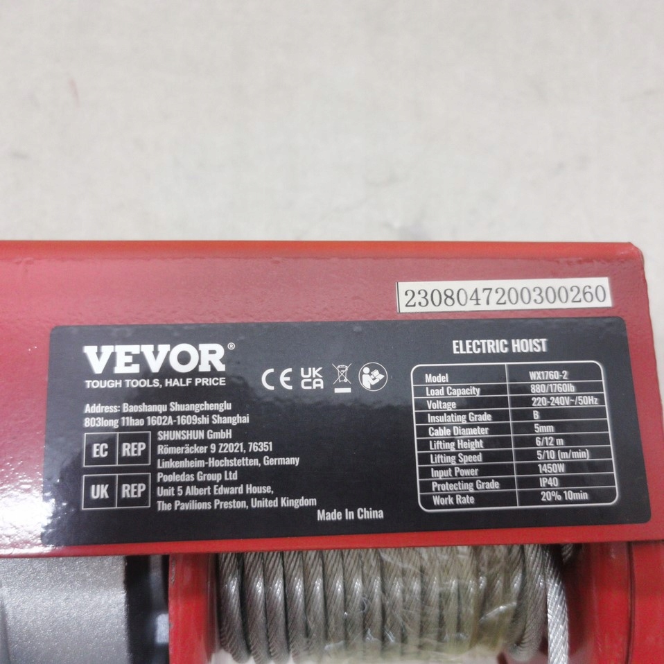 Просматривая «H11 Електроталь VEVOR WX1760-2 810кг», вы можете быть уверены, что данный товар из каталога «Электрические тросы» будет доставлен из Польши и проверен на целостность. В цене товара, указанной на сайте, учтена доставка из Польши. Внимание!!! Товары для Евросоюза, согласно законодательству стран Евросоюза, могут отличаться упаковкой или наполнением.