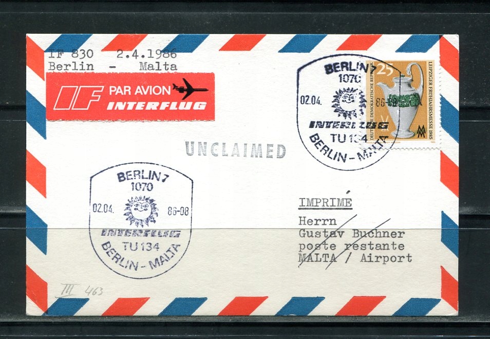 H1823)DDR - Interflug FFC 1986 Berlin - Malta