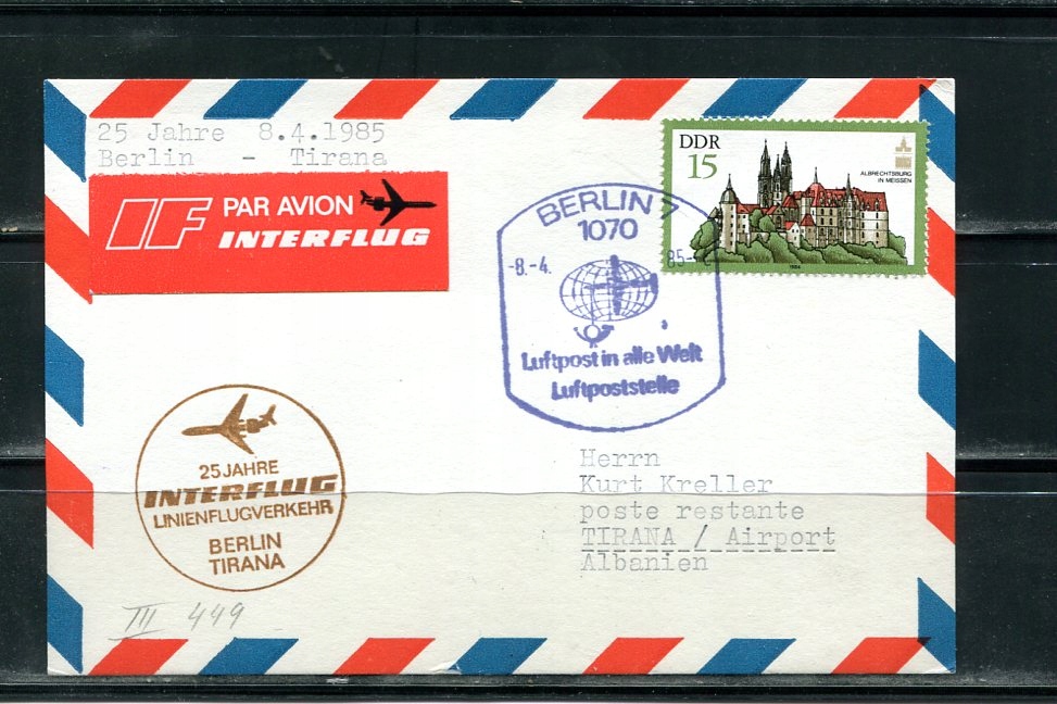 H1848)DDR - Interflug FFC 1985 Berlin - Tirana