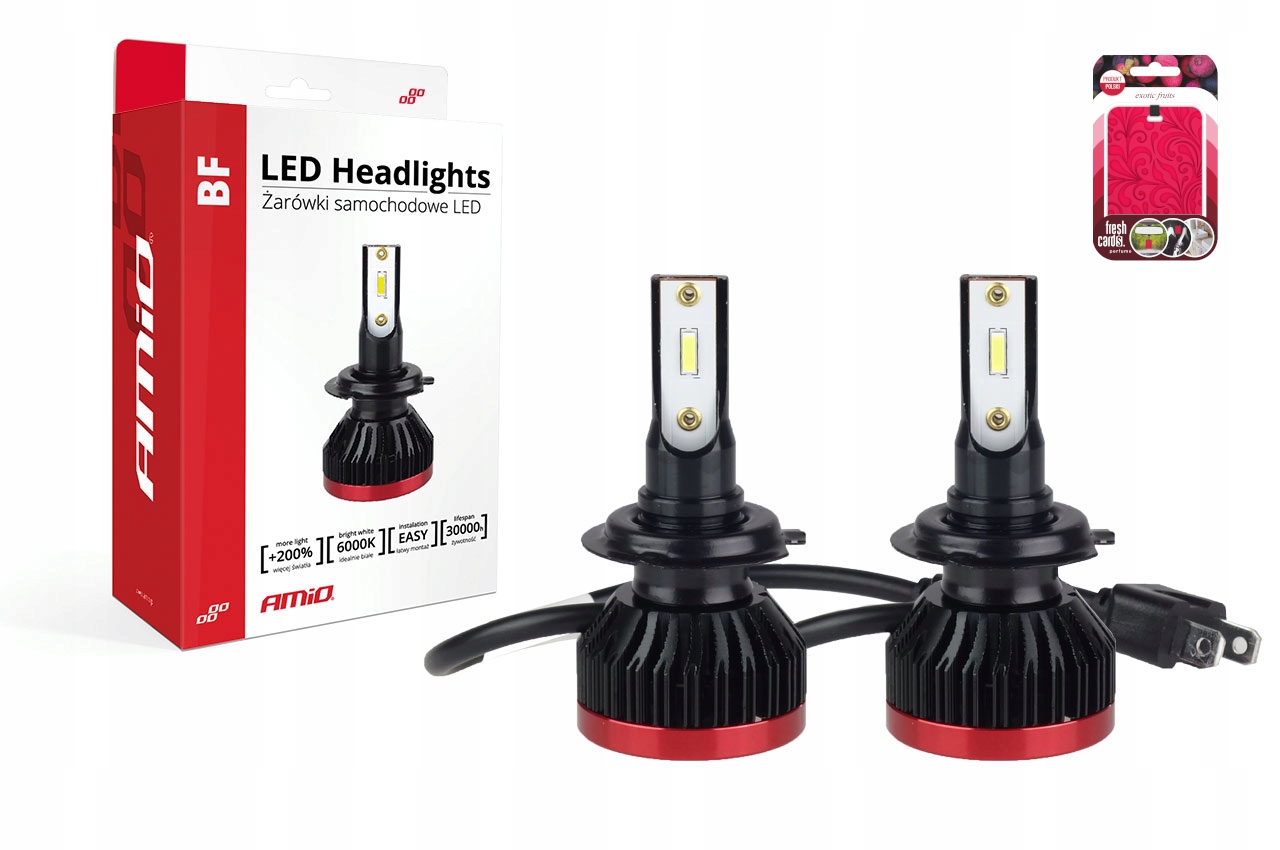 В комплект входят: Набор лампочек H7 Amio и ароматизатор для автомобиля.