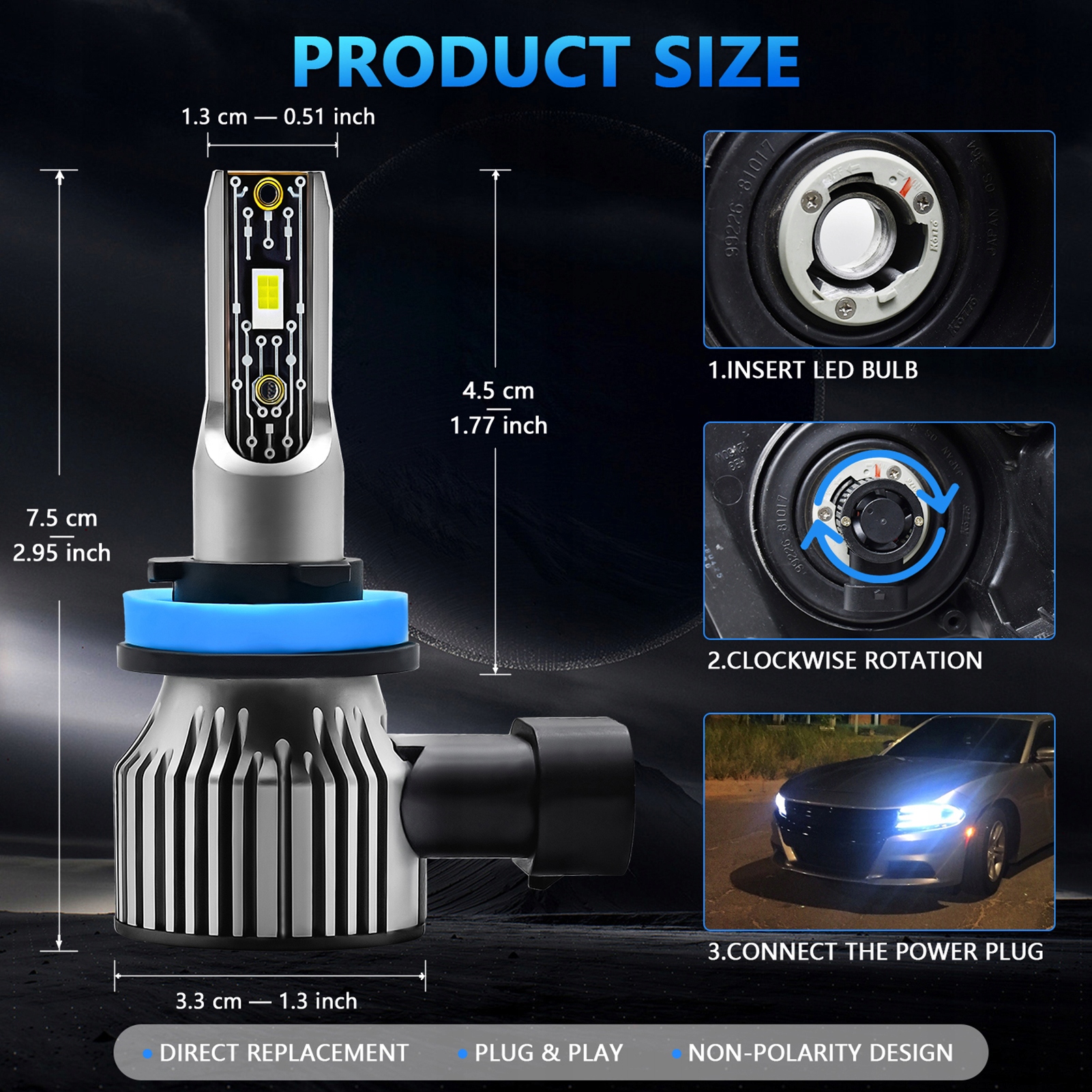 3. Светодиодные лампы фары применяют прямую конструкцию плагина, которая ближе к размеру исходной галогенной лампы и удобнее установить.