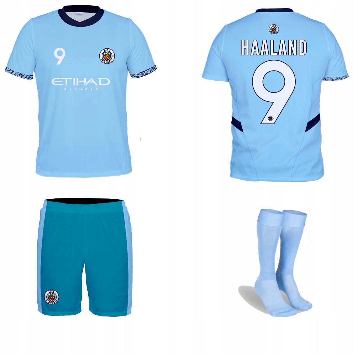 футбольный костюм, который включает в себя T -Fish, Shorts и Gaiters.