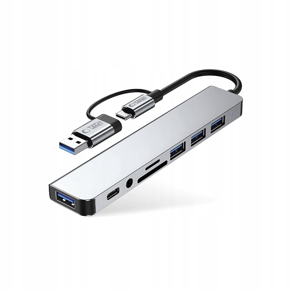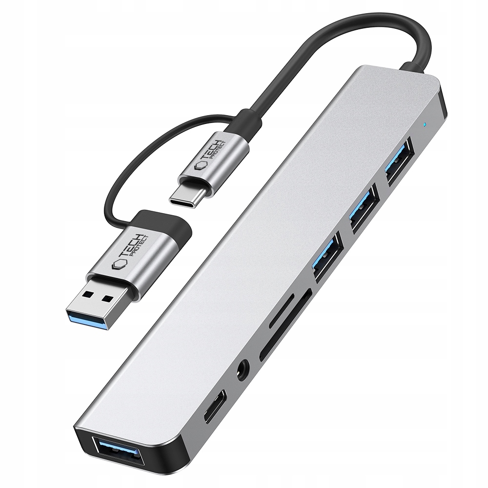 Tech-защитный адаптер HB06 9IN1-это компактное, многофункциональное устройство, подходящее для всех компьютеров, поддерживающих порт USB-C. Благодаря сплошному алюминию и дизайну ABS адаптер легкий и в то же время устойчив к повреждениям и долговечному. Устройство оснащено пятью портами, которые предлагают различные функции. Устройство имеет один порт USB-C, разработанный для передачи данных. Адаптер оснащен аудио -выходом 3,5 мм для подключения наушников или динамиков. Кроме того, он содержит чтения карт памяти, который поддерживает как SD, так и TF (MicroSD). Масса для зарядки устройства, под которым подключен концентратор (ноутбук, смартфон). Он не поддерживает передачу данных. Mb/s