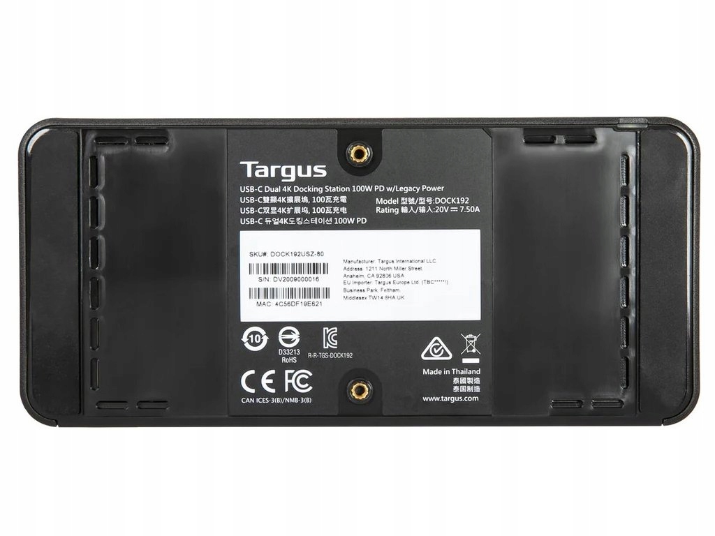 Док-станция Targus поддерживает подключение двух мониторов, что позволяет удобно работать на нескольких экранах одновременно.