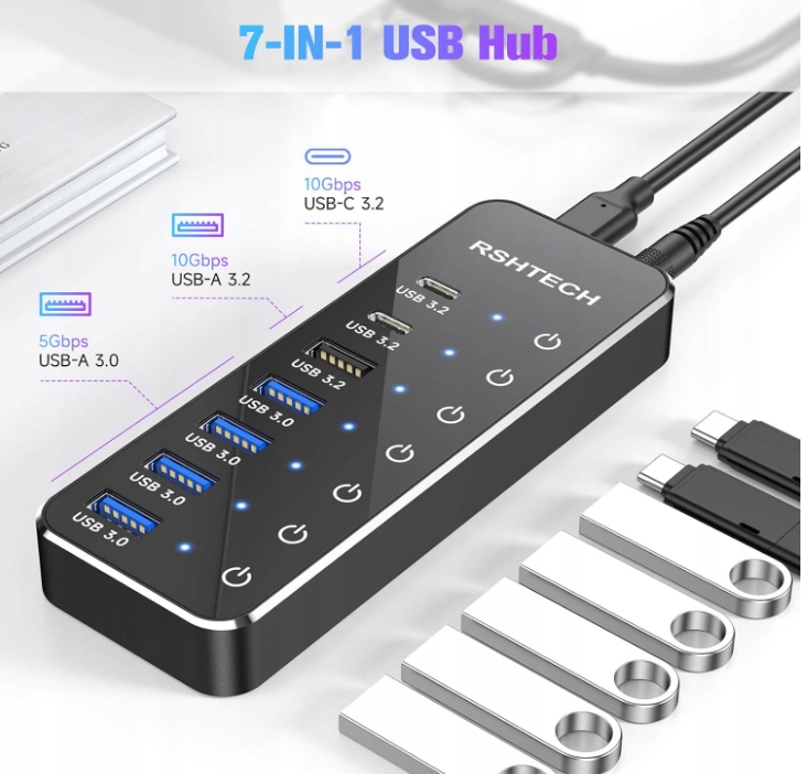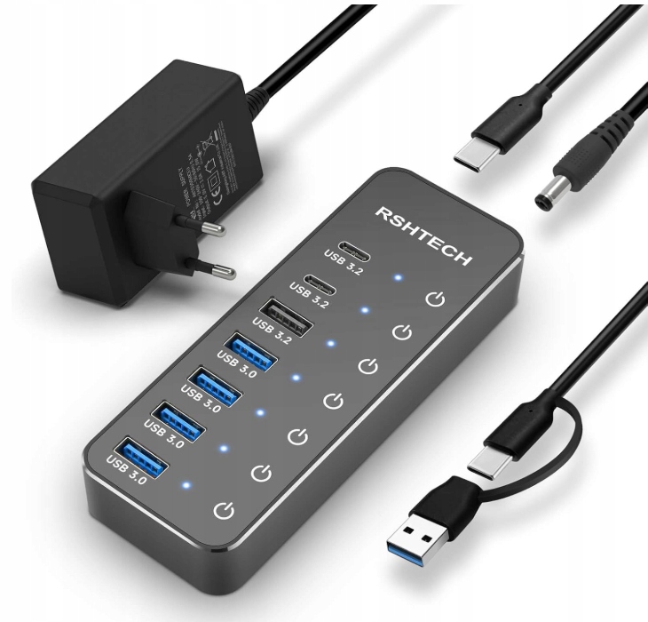 Хаб USB C 3.2 с блоком питания РШТЕХ 7 портов Touch