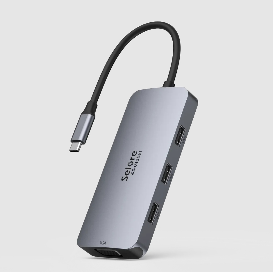 ХАБ USB C 7В1 HDMI DP VGA USB 2.0 SELORE