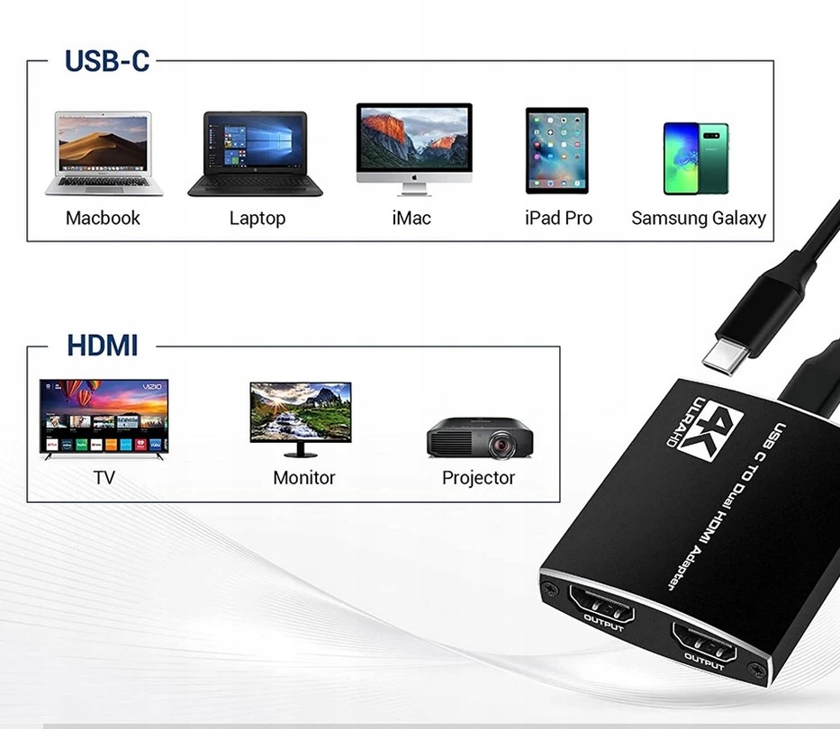 ▶ ️ Адаптер USB-C для 2x HDMI, 4K 60 Гц является чрезвычайно функциональным и универсальным устройством, которое позволяет расширить параметры отображения изображения на компьютерах, ноутбуках или планшетах, оснащенных портом USB-C