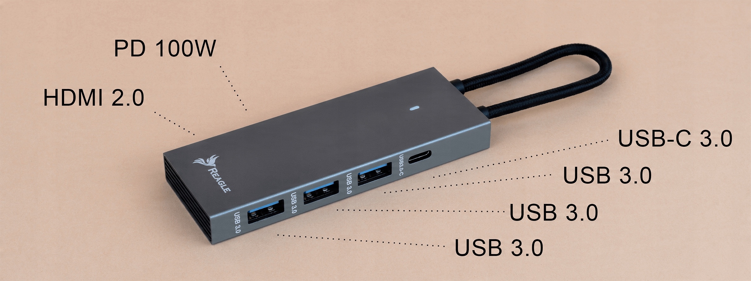Концентратор RHUB54C USB-C от Reagle — это инструмент, созданный для современных пользователей, которым необходим быстрый доступ к различным устройствам и портативным решениям. Он имеет 6 портов, включая HDMI 2.0, что позволяет подключить монитор или телевизор с качеством 4K@60Гц (8бит), 2560×1440@144Гц ( 8 бит), 2560×1440 при 120 Гц (10 бит), что обеспечивает потрясающие визуальные впечатления. Power Delivery мощностью 100 Вт позволяет быстро заряжать даже самые требовательные устройства, например ноутбуки. Это ответ на растущие требования цифрового мира.