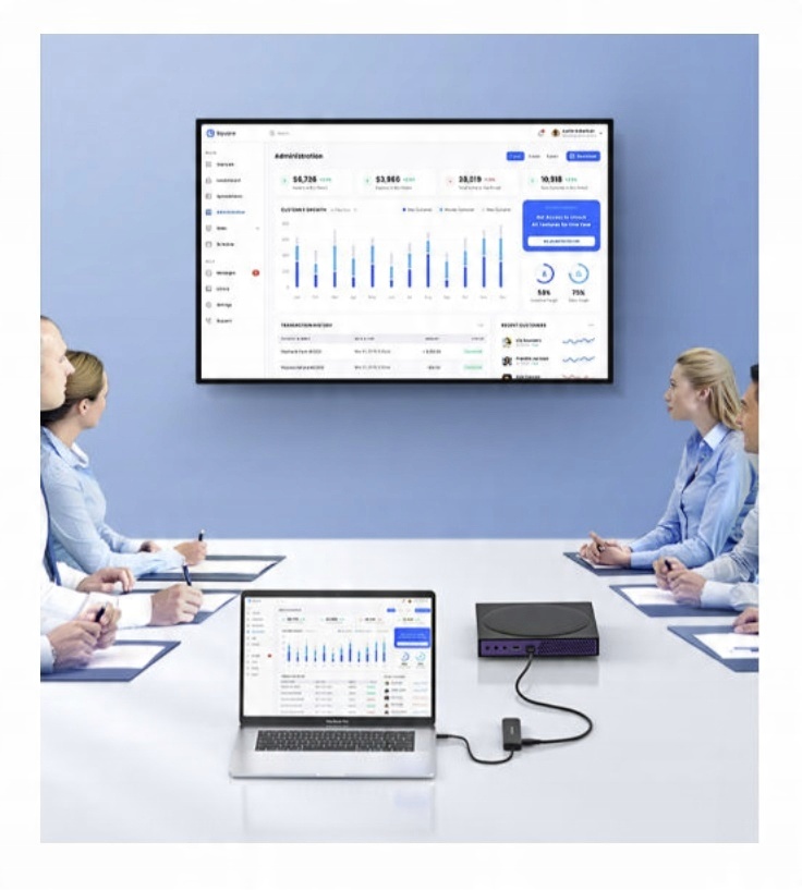 Адаптер поддерживает Samsung DEX и Huawei Easy Projection. Подключите смартфон к блоку питания и адаптеру и используйте его как компьютер благодаря Samsung DEX и Huawei Easy Projection.