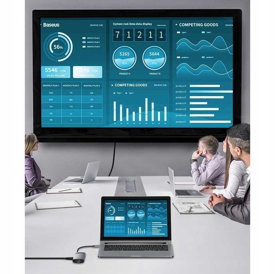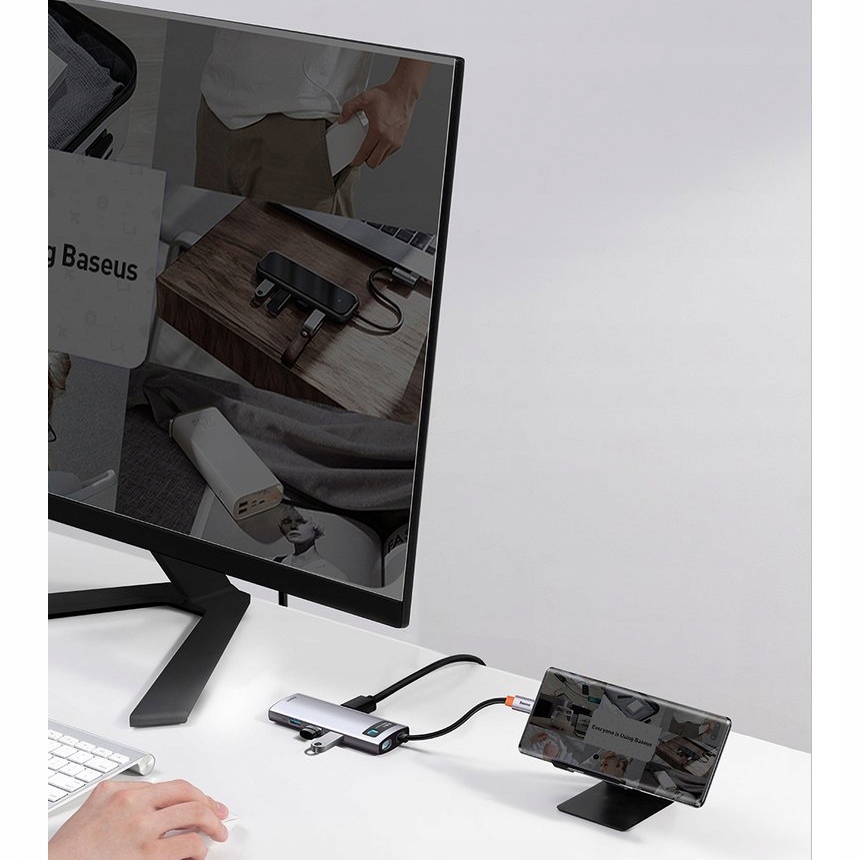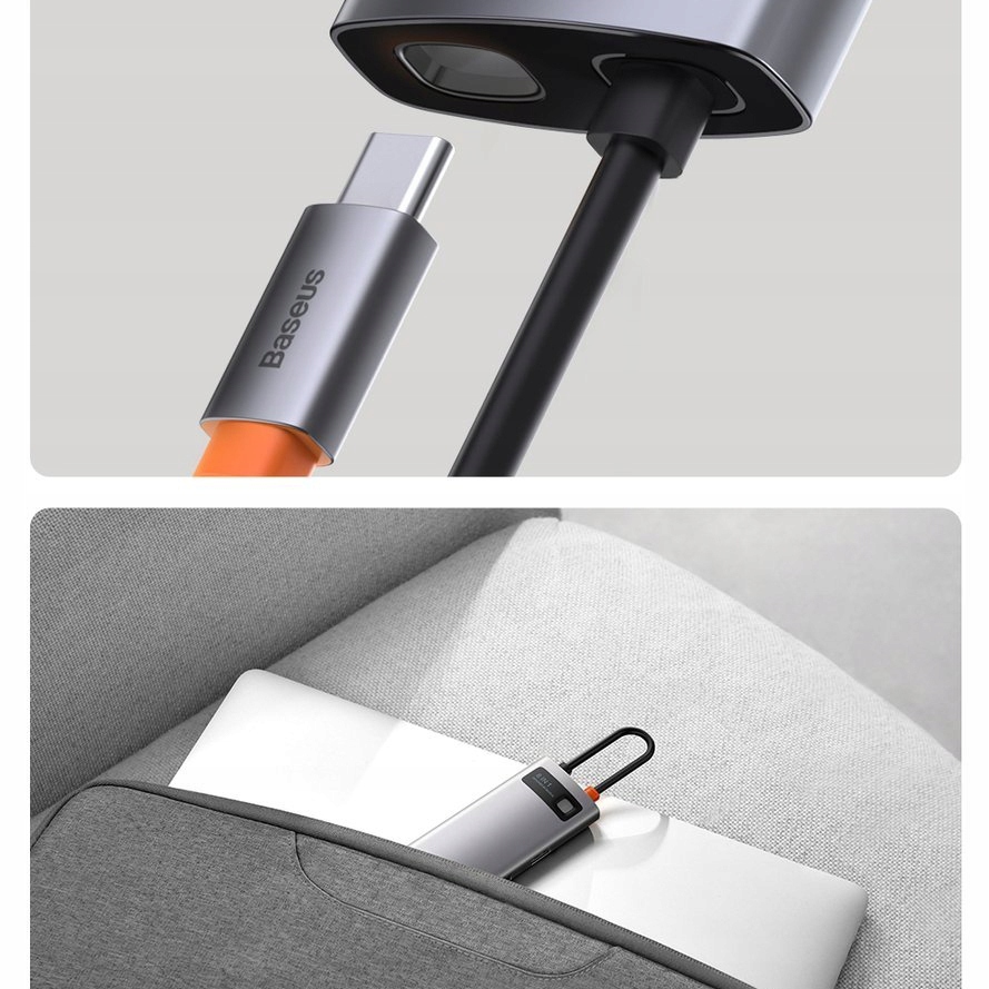 Baseus Hub позволяет подключить все необходимое для работы оборудование. Он позволяет подключить монитор, телевизор, мышь, клавиатуру или блок питания. Концентратор имеет вход USB-C Power Delivery 100 Вт, 3 порта USB 3.0, HDMI 4K, устройство чтения карт SD, устройство чтения карт TF и порт Gigabit Ethernet 1 Гбит/с. Кабель USB-C позволяет подключить хаб к новейшему оборудованию.