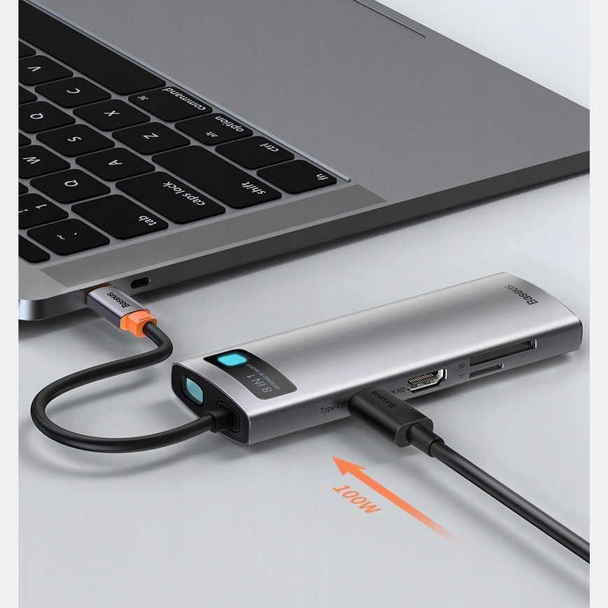 Baseus Metal 8в1 | USB-концентратор | USB-C PD 2 порта USB 3.0 HDMI 4K SD TF-кардридер Ethernet RJ45