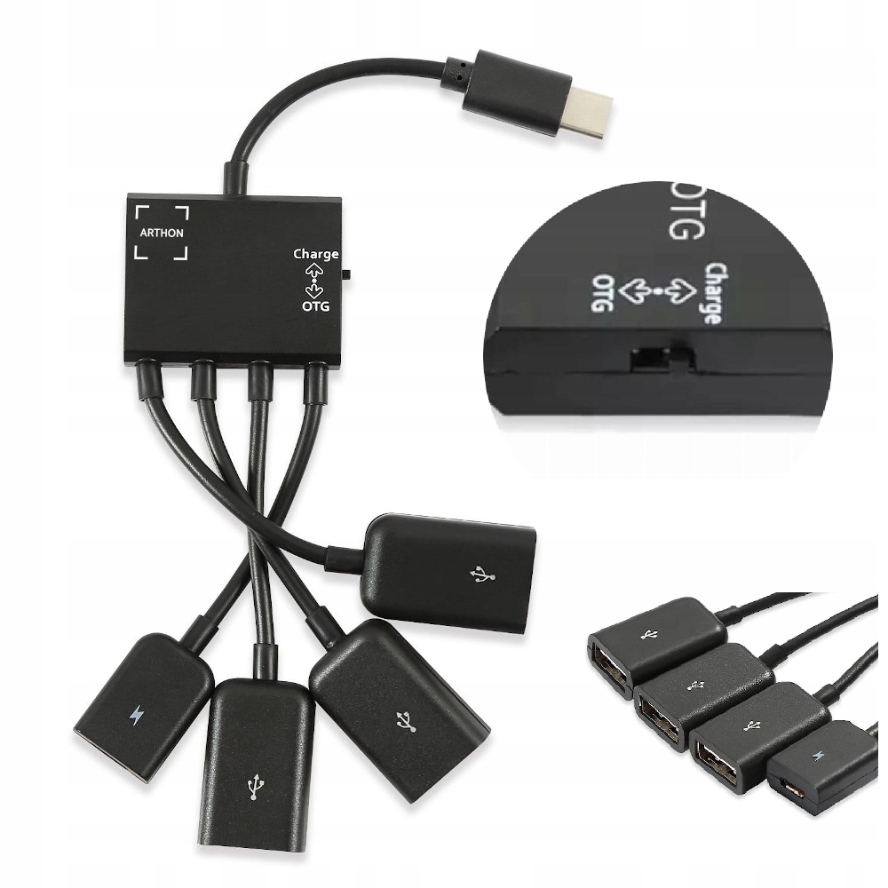 Если мы хотим зарядить устройство, подключаем зарядное устройство micro USB, переключаем устройство с «OTG» на «Зарядка». Во время зарядки нельзя использовать функцию OTG, т.е. другие порты USB.