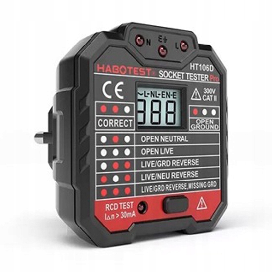 Индикатор светодиод , помещенный в верхнюю часть устройства, сообщит вам о любых проблемах. Если тестер обнаруживает некоторую нерегулярность , светодиоды будут освещаться в определенном бине. Благодаря этому вы быстро узнаете, например, об замене кабелей плюс/минус, отсутствие заземления или без кабеля. Используя ht106d , вы также можете выполнить простой тест RCD.