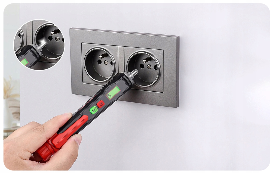 не -контактный детектор напряжения (NCV) и фаза Habotest обеспечивает точное измерение и безопасность использования. Оснащено кнопкой ЖК -дисплея и кнопки регулировки чувствительности - очень удобно в использовании. Я предлагаю Проверка Условия , Обнаружение ectacular - i -Butticals. Встроенный светодиодный фонарик облегчит вашу работу. Устройство питается на 2 AAA 1,5 Вт.