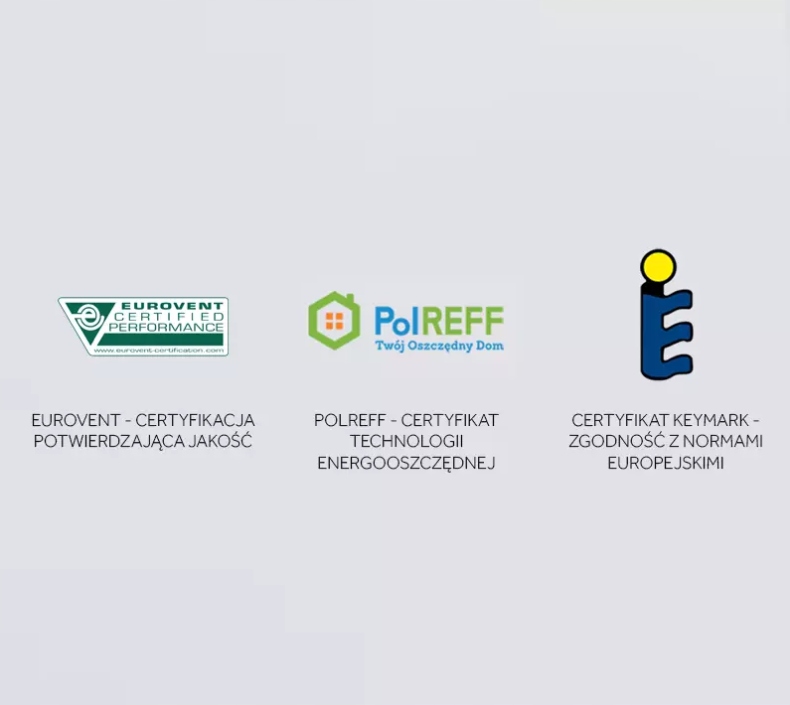 Super Aqua Haier Тепловые насосы являются доказанными устройствами, качество и надежная работа, независимые сертификаты подтверждены. Haier Teat Pumps получили европейскую сертификацию европейской, подтверждая качество устройств. Следующая сертификация Haier Heat Pumps составляет polreff , то есть сертификат, который определяет уровень энергоэффективности. Тепловые насосы сертификатов Polreff могут быть финалированы в рамках программ чистого воздуха, а также облегчения термомодернизации. Другой важной сертификацией является keymark , который свидетельствует о соответствии продукта с европейскими стандартами в отношении здоровья, безопасности и окружающей среды. Кроме того, тепловые насосы Haier вводятся в списке Zum и соответствуют экологическим стандартам программы финансирования чистого воздуха.
