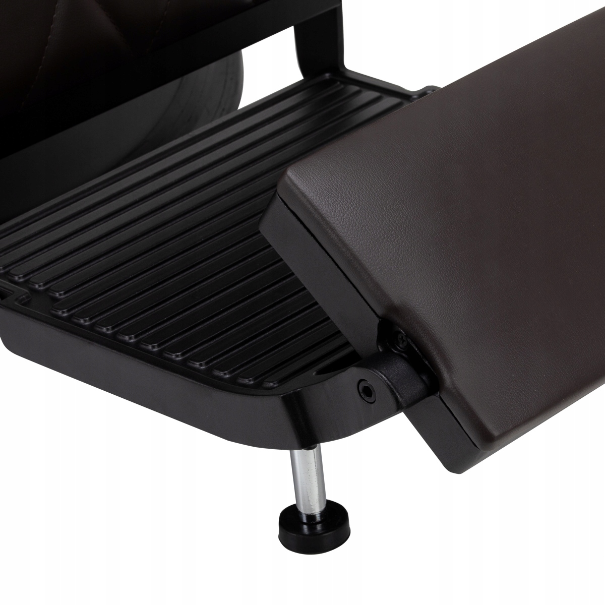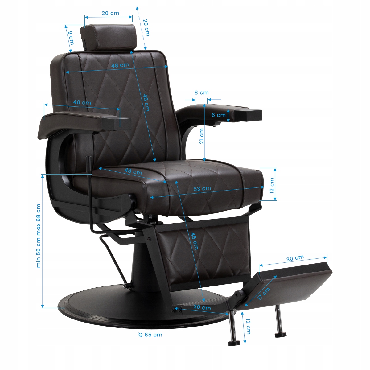 Прочная конструкция круглого основания обеспечивает стабильность и высокий комфорт использования. Наполнитель сиденья выполнен из устойчивого к деформациям пенопласта, а обивка – из приятной на ощупь искусственной кожи с матовым покрытием, обеспечивающей долговечность мебели и ее комфортное использование в течение длительного времени. Стильная строчка на обивке придает креслу характер, напоминающий автомобильный дизайн, что подчеркивает его элегантный внешний вид. Они также делают оборудование устойчивым к влаге, долговечным и простым в уходе. Коричневое покрытие придает ему уникальный характер, а минималистический стиль позволяет ему вписаться в интерьер любой парикмахерской.