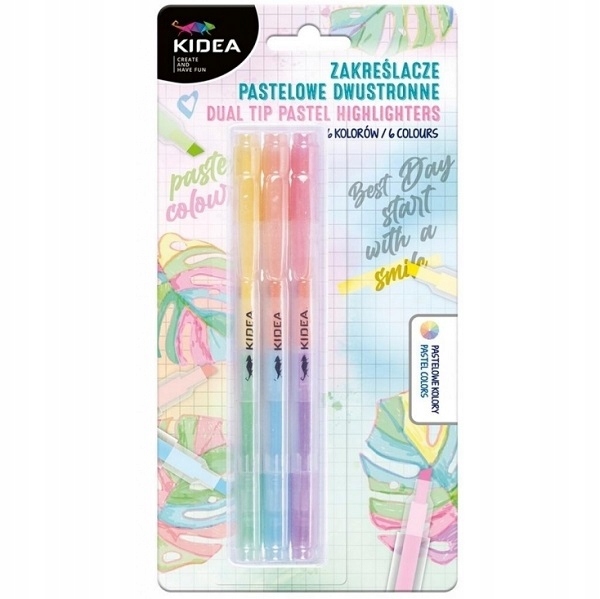 Kidea, Хайлайтеры двухсторонние, 3 шт/6 цветов - пастель (ZPD6KKA)