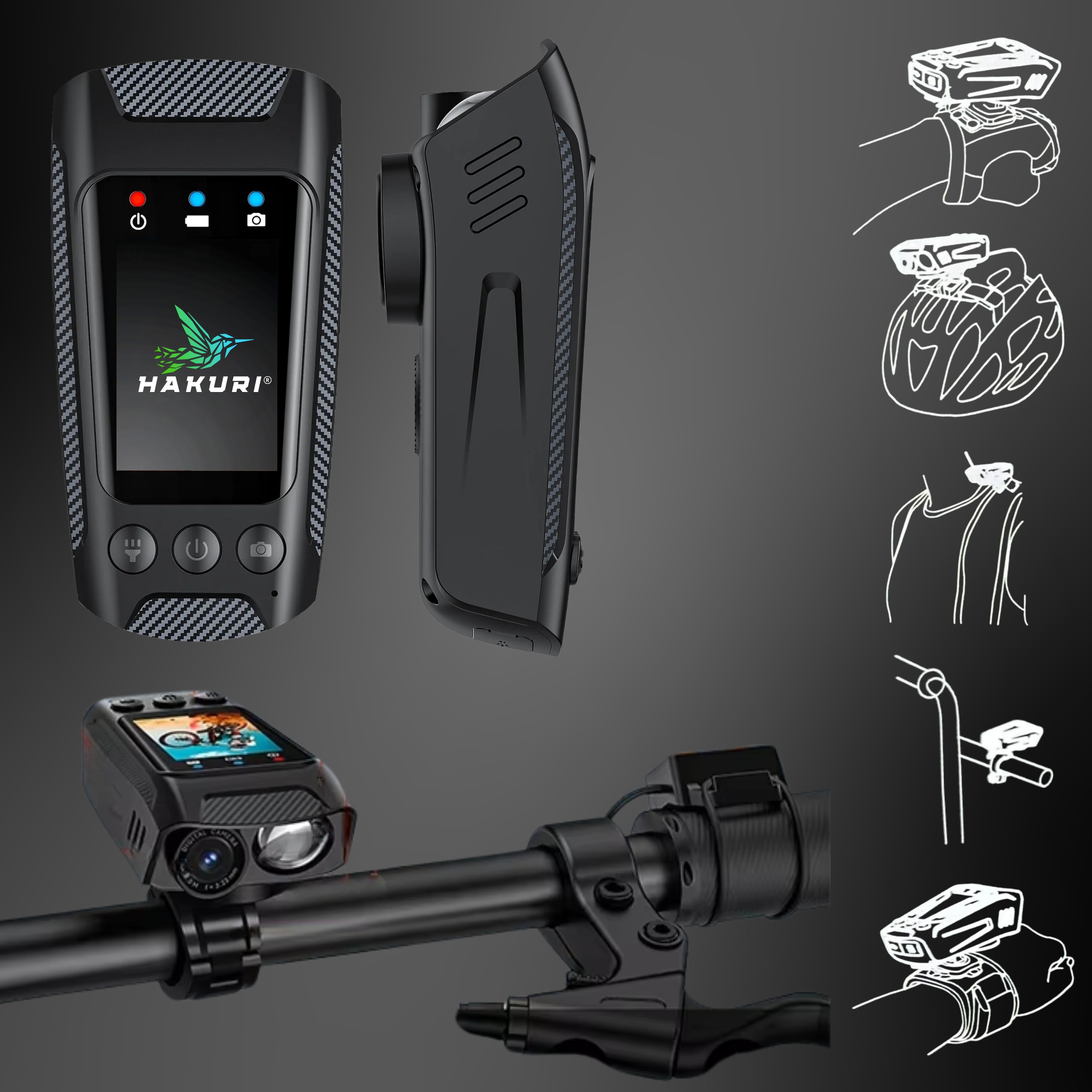 HAKURI Велосипедная спортивная камера 4KВидеорегистратор Фонарик Рог 4в1+64G