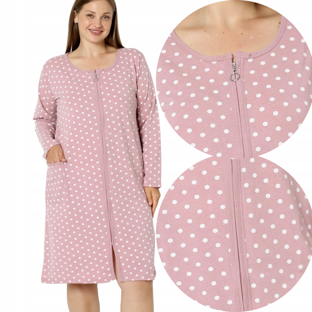 ХАЛАТ ЖЕНСКИЙ, ХЛОПКОВАЯ МОЛНИЯ, БЕЗ КАПЮШОНА, НИЖЕ КОЛЕН.