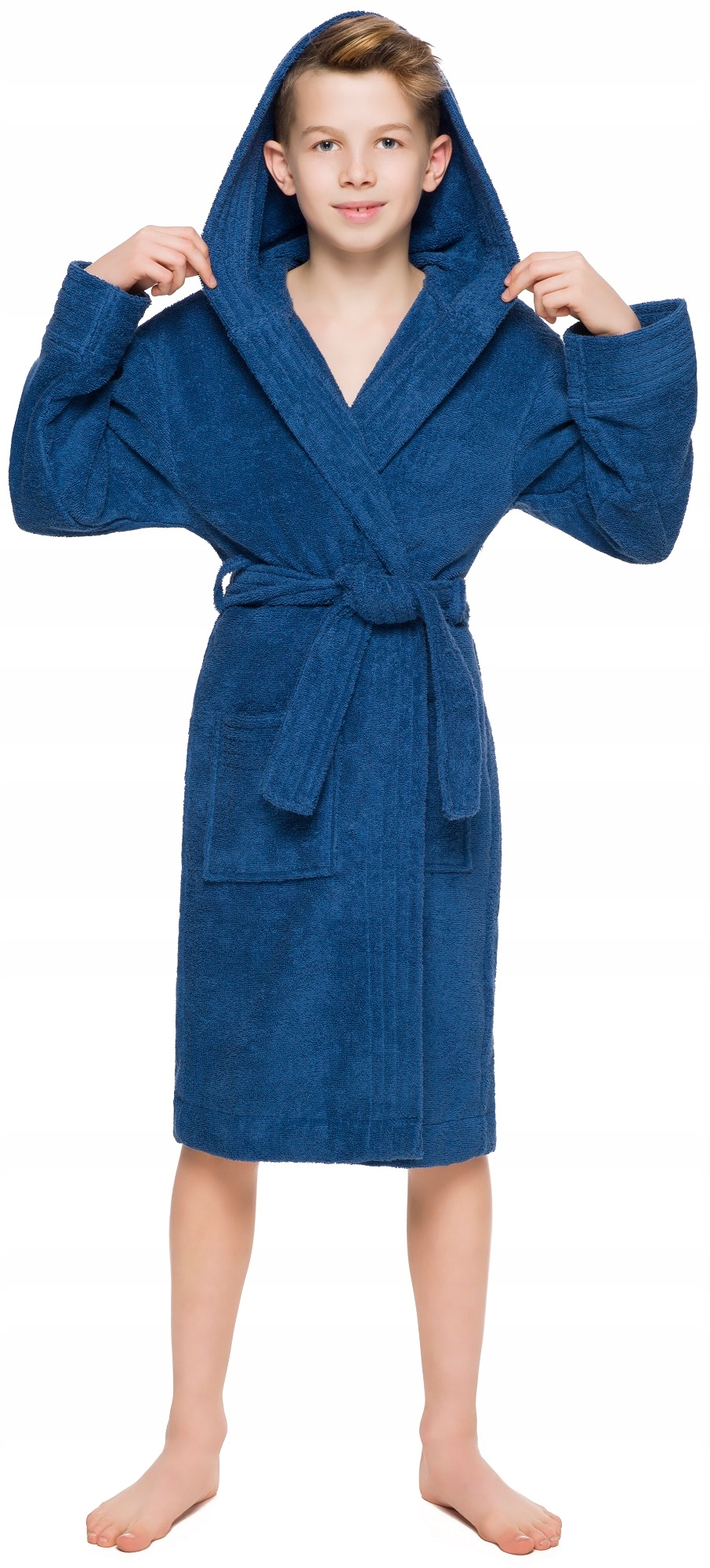 Красивый и удобный халат для мальчиков - подростков, из махрового хлопка, с капюшоном, завязывающимся на талии, с карманами.