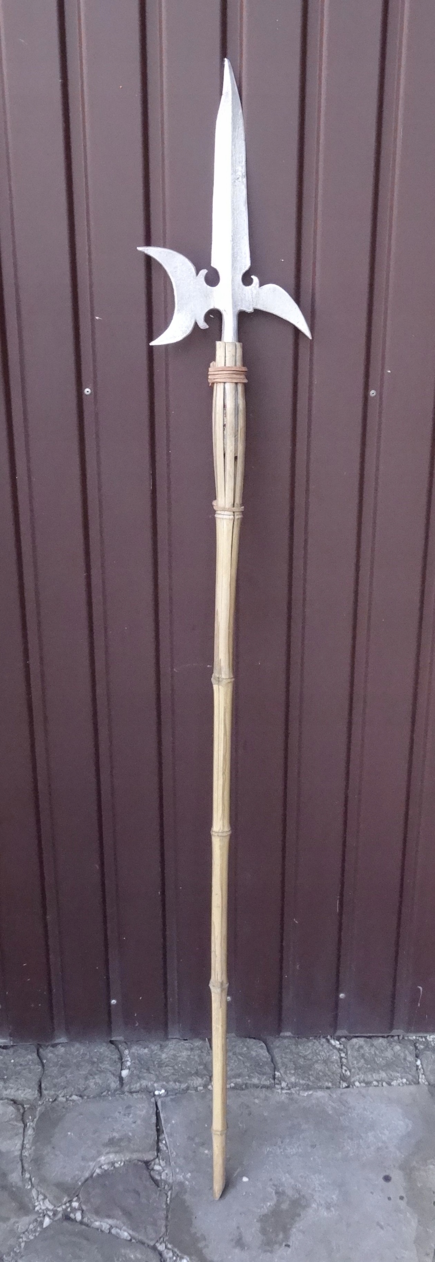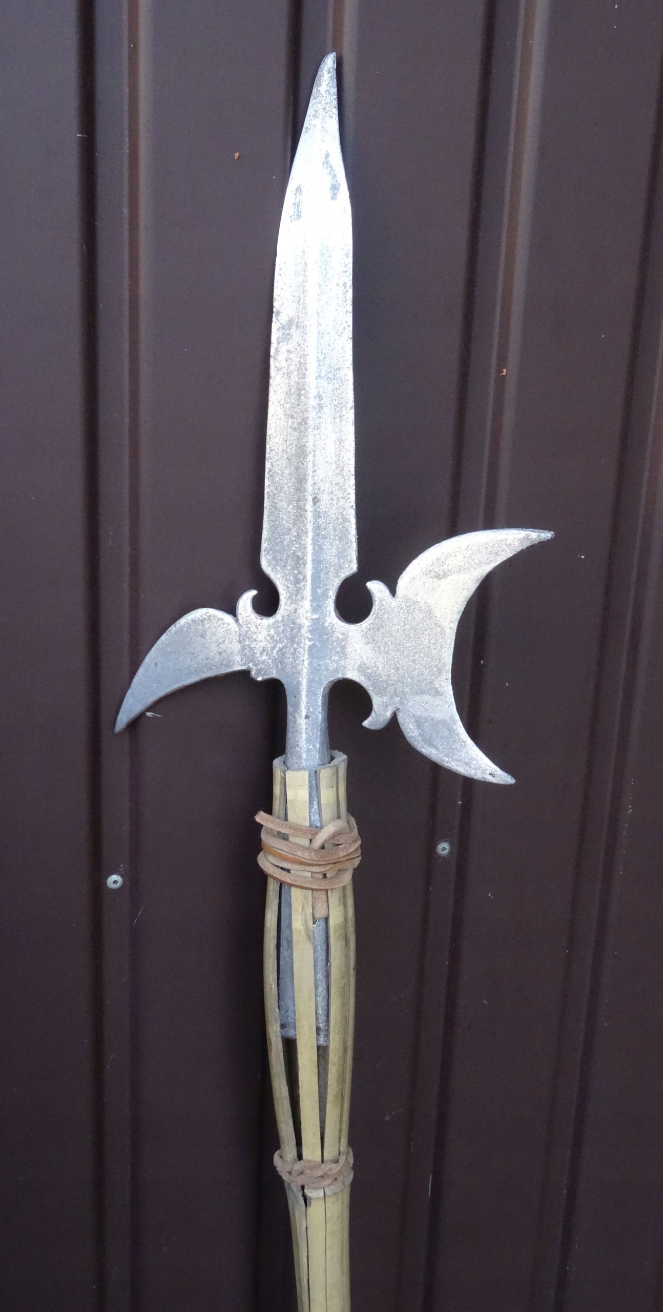 halbard, сделанный из алюминия, связанного бамбуковым полюсом. Халбард будет решен и удален с полюса для транспорта. Театральные реквизиты и т. Д. Состояние, как на фотографиях.