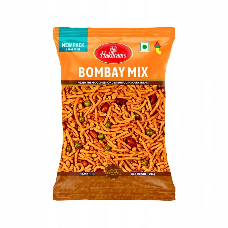 Индийская закуска Bombay Mix от Haldiram's — это классическая индийская закуска намкин, сочетающая в себе множество вкусов и текстур. Эта слегка острая смесь содержит хрустящую лапшу из нутовой муки, жареный нут, зеленый горошек и арахис – все это приправлено ароматными специями. Идеально подходит для вечера с чаем, как дополнение к блюдам из чата или как самостоятельный перекус в течение дня. Bombay Mix — вкус, сочетающий традиции с выразительностью индийской уличной кухни.