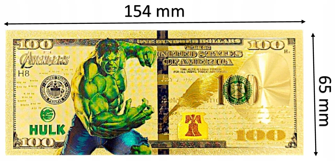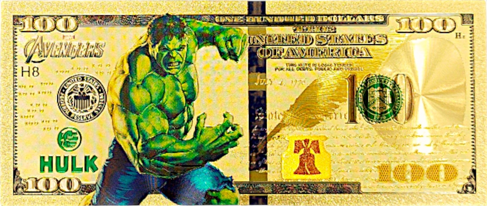 ХАЛК МСТИТЕЛИ Красивая позолоченная банкнота из ПВХ