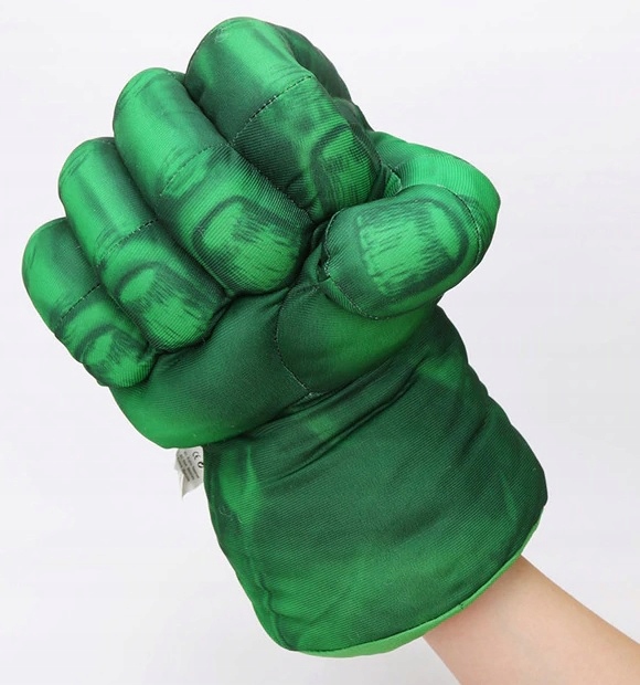 В комплект входят перчатки для костюма Халка. Реквизит был сделан с вниманием к деталям. Перчатки напоминают сжатые кулаки героя. Тем не менее, они изготовлены из мягкого материала и не представляют угрозы для ребенка во время игры.