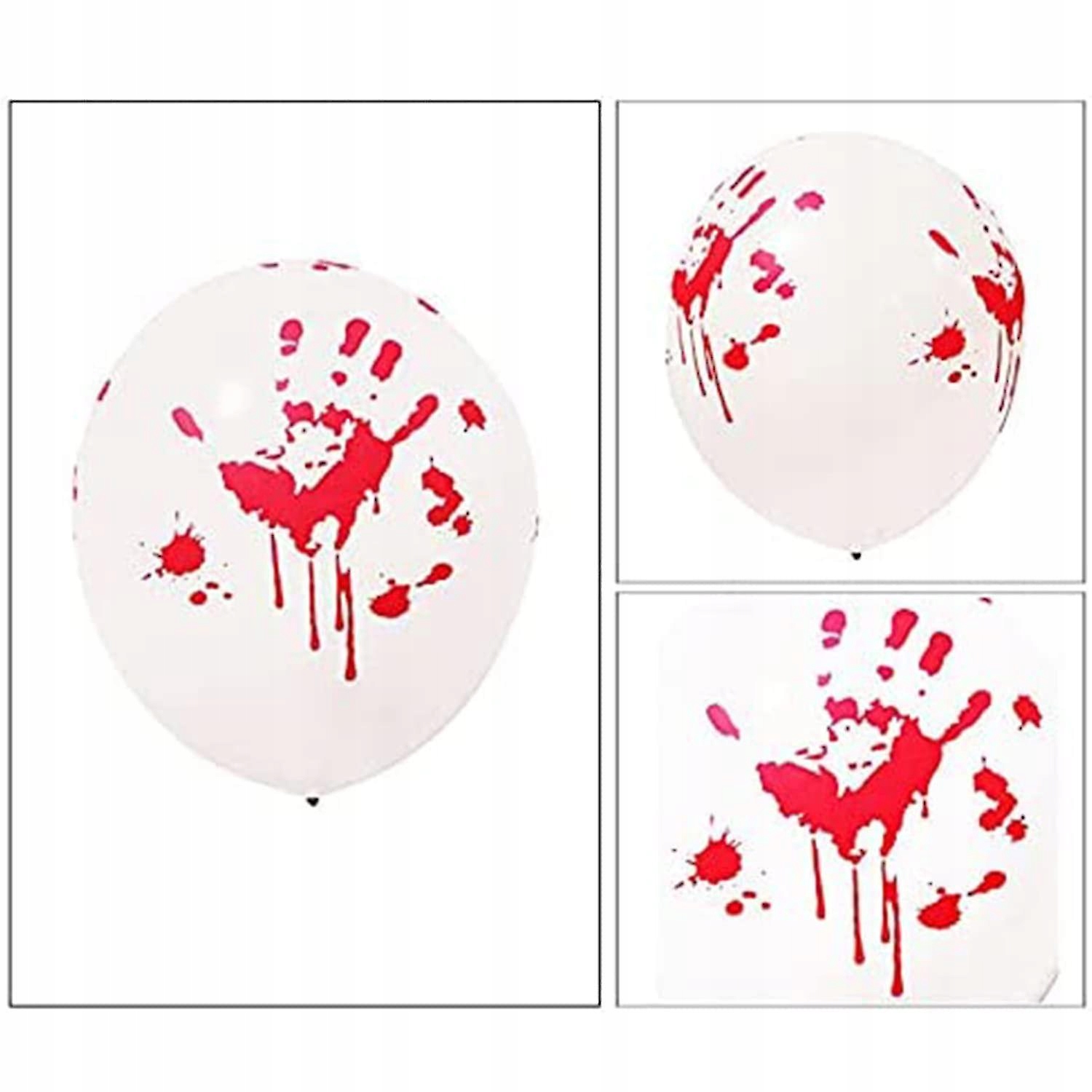 b> 24 воздушных шара с принтом 3-х разных цветов: 8 оранжевых с тыквами, 8 белых с пятнами крови и 8 черных с надписями. "Счастливого Хэллоуина". Воздушные шары подходят как для внутреннего, так и для внешнего оформления.