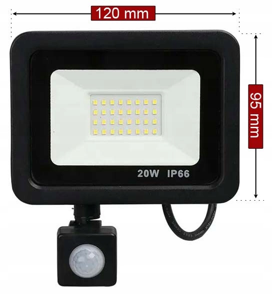 HALOGEN 20W LED CZUJNIK RUCHU NAŚWIETLACZ LAMPA REFLEKTOR SLIM 4500K IP66