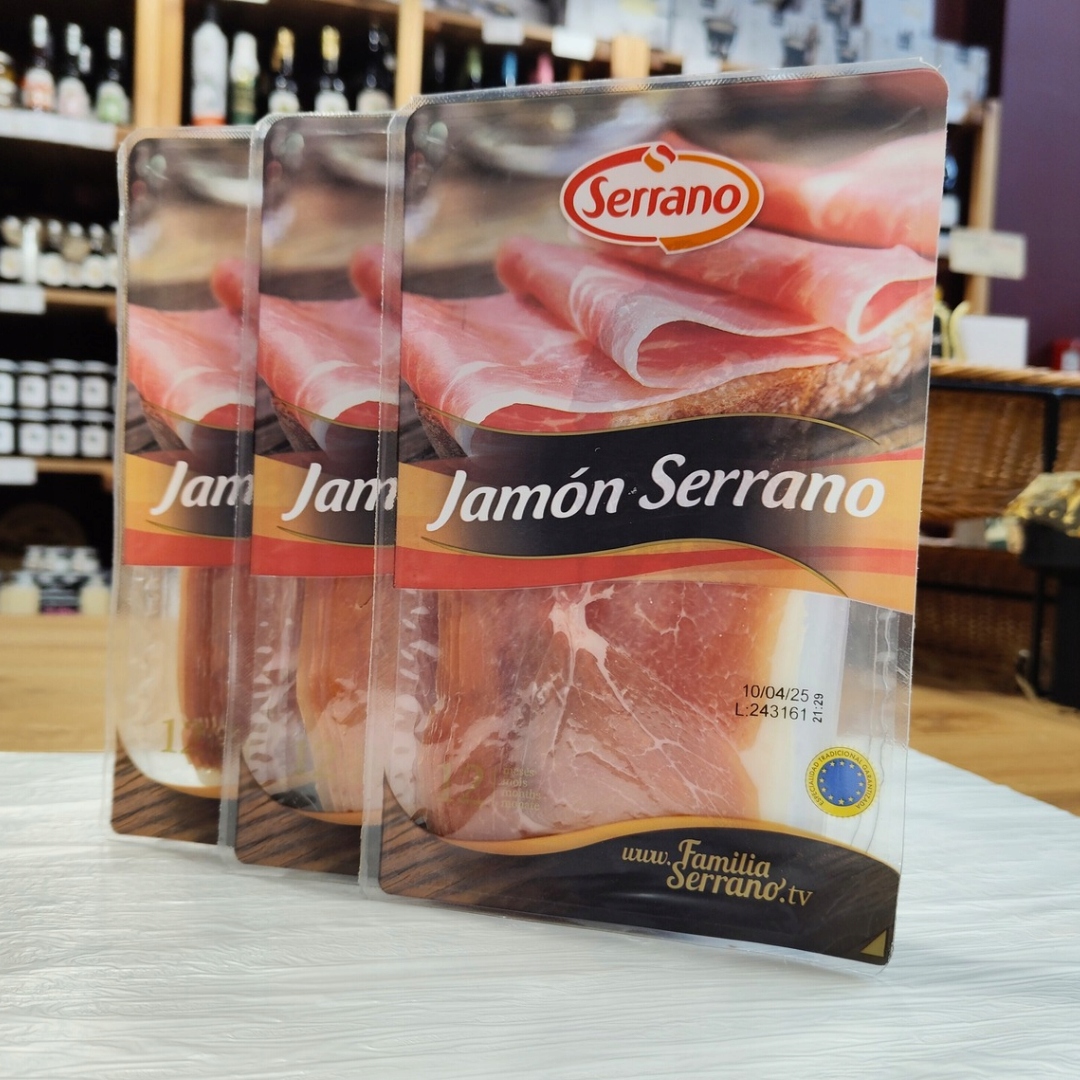 Jamón Serrano идеально подходит в качестве элемента доски тапас, в компании сыра, оливок, фруктов и хорошего вина. Это также может быть дополнением к бутербродам, пицце, макаронам, яйцам или потреблению соло - тонко нарезанными при комнатной температуре.