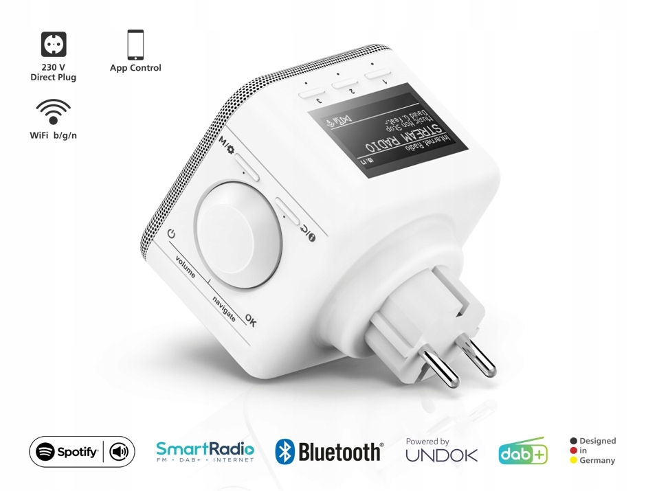 Радио обеспечивает прием высококачественных цифровых сигналов DAB и DAB+, а также аналоговых FM-сигналов. Устройство подключается к сети по беспроводной сети, обеспечивая доступ к онлайн-радиостанциям, подкастам и музыке из Spotify. Ресивер имеет память на 30 местных радиостанций и 30 интернет-станций.