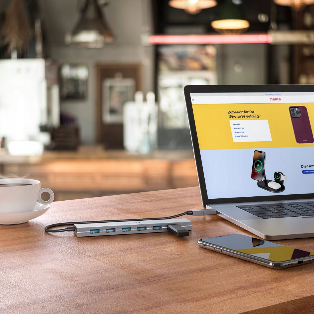 Хаб Hama можно подключить к порту USB-A вашего компьютера или к порту USB-C с помощью прилагаемого адаптера. Это позволяет использовать его с разными устройствами.