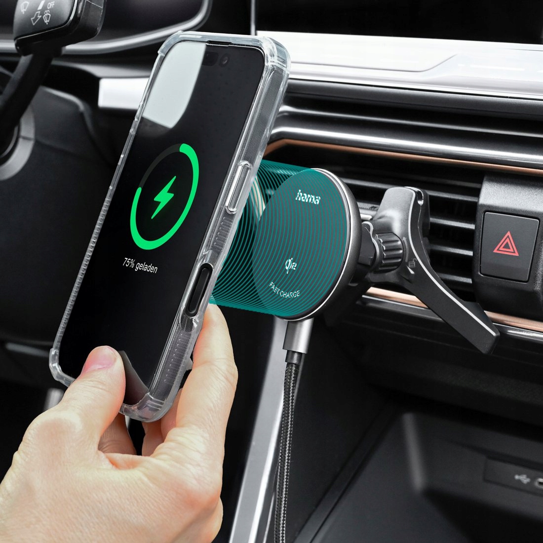 Индукция автомобиля индукция Hama Qi2 быстро зарядка 15 Вт чернокожие для телефона