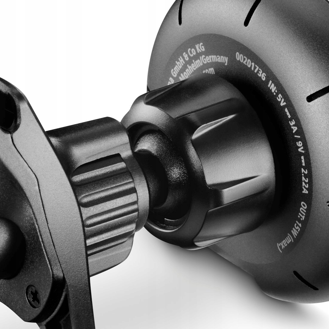 Держатель автомобиля отличается элегантным, алюминиевым корпусом и черными и антракоциальными цветами. Благодаря компактным размерам, он идеально подходит для внутренней части кабины, предлагая осторожную и функциональную форму .