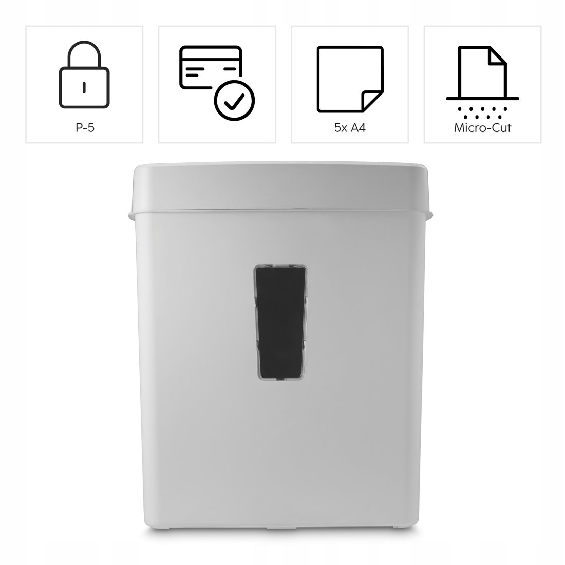 Уничтожитель соответствует стандарту DIN 66399 и уровню безопасности P5, что означает, что он подходит для уничтожения персональных данных в соответствии с требованиями GDPR. Идеально подходит для частных лиц и компаний, которые заботятся о конфиденциальности документов.