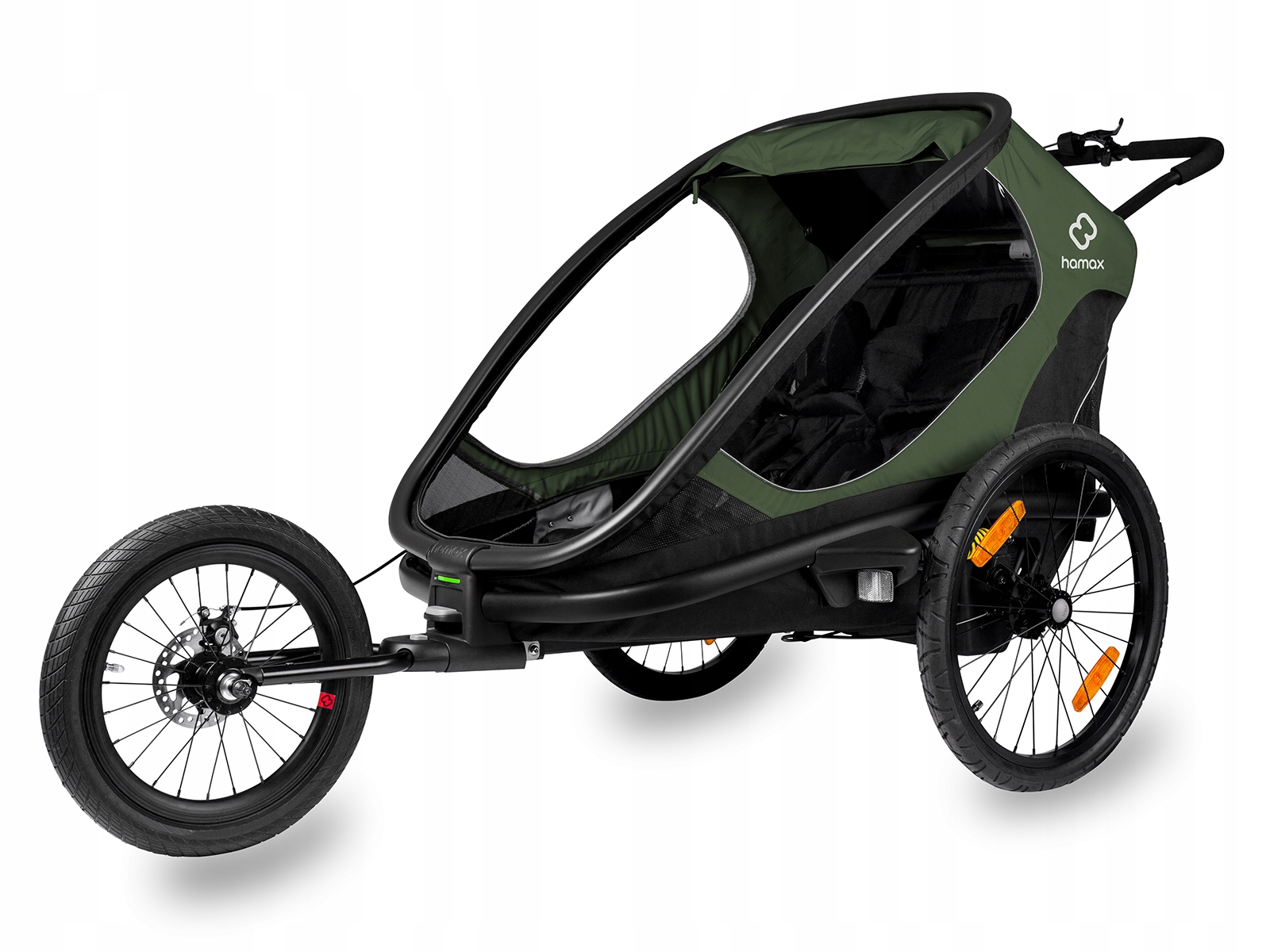 Hamax Outback имеет удобную коляску. салон и большие окна, обеспечивающие хороший обзор вашего ребенка во время вождения. Прицеп легко собирается и транспортируется. Hamax Outback имеет просторный и удобный салон с регулируемыми подголовником и сиденьем. Пол кабины покрыт пластиковым материалом. Прицеп также оснащен 5-точечными ремнями безопасности, повышающими безопасность ребенка во время движения.