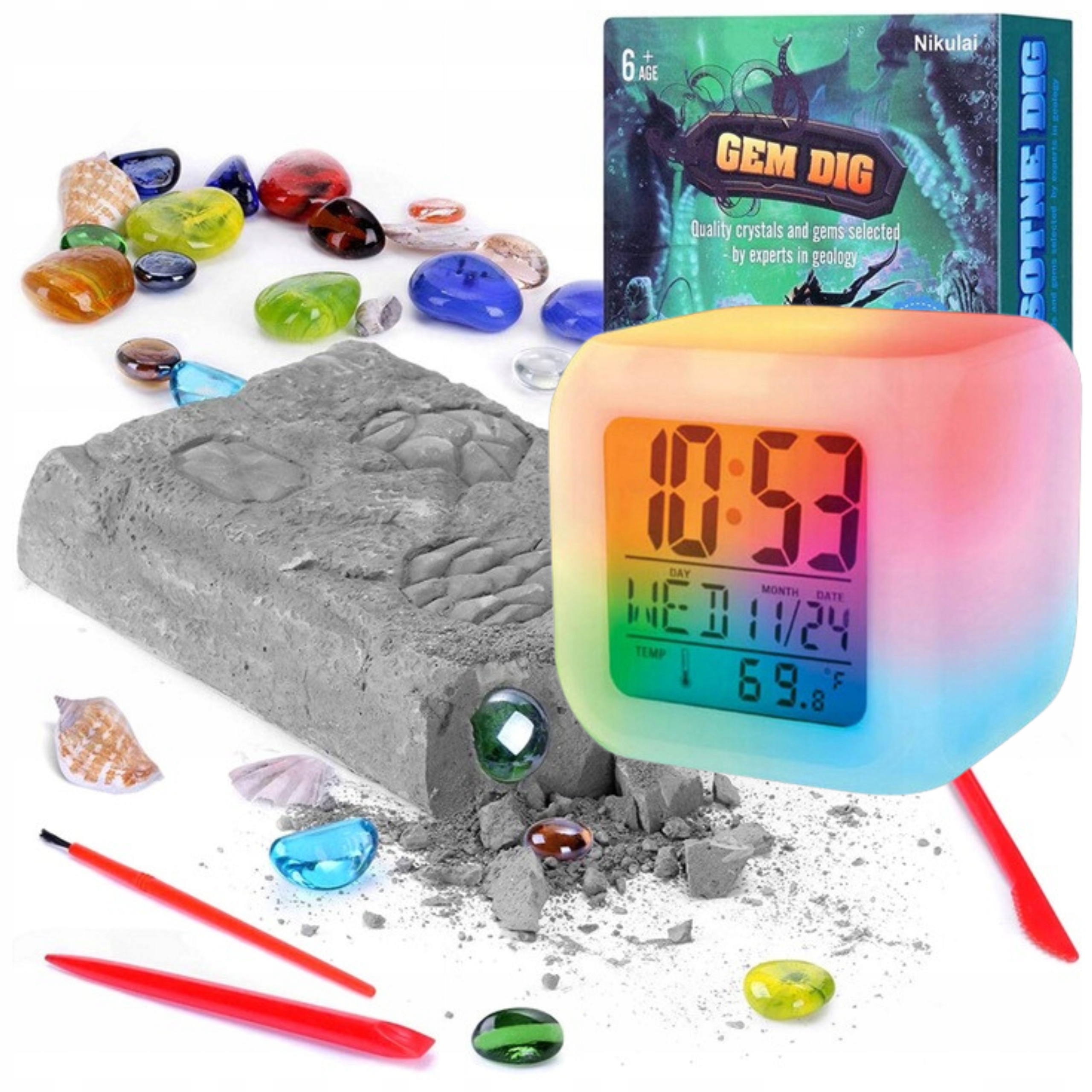 ▶️ Высокое качество: И будильник, и набор для раскопок изготовлены из материалов высочайшего качества.