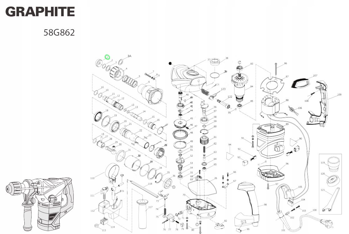 Hammer Hammer SDS -крышка Grip Graphite 58G862 58G858 Hammer