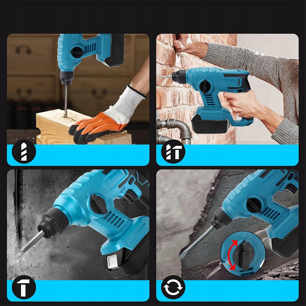 ☑ свет в одном, он может использоваться в качестве электрической тренировки, электрического молотка и электрической пики. работа.