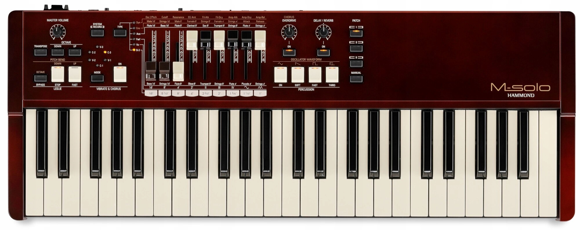 Одиночные органы, 49 световых клавиш, генератор органа, струн и полифонический синтезатор, 9 сухожилий, эффект лесли с переключателем, 3 памяти, изгиб высоты, миди в/OUT, вход стерео, стерео-линии, размеры 731 x 274 x 85 мм, вес 3,6 кг, AD3-1230-2P