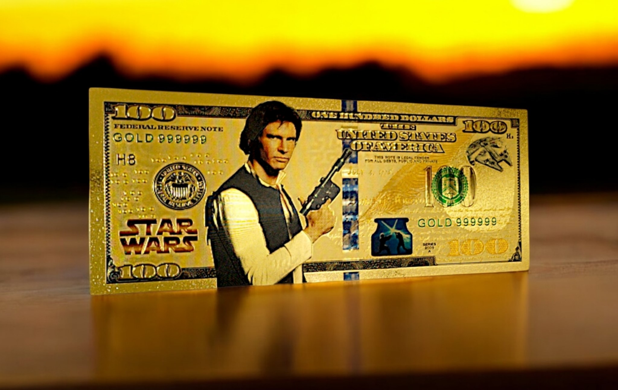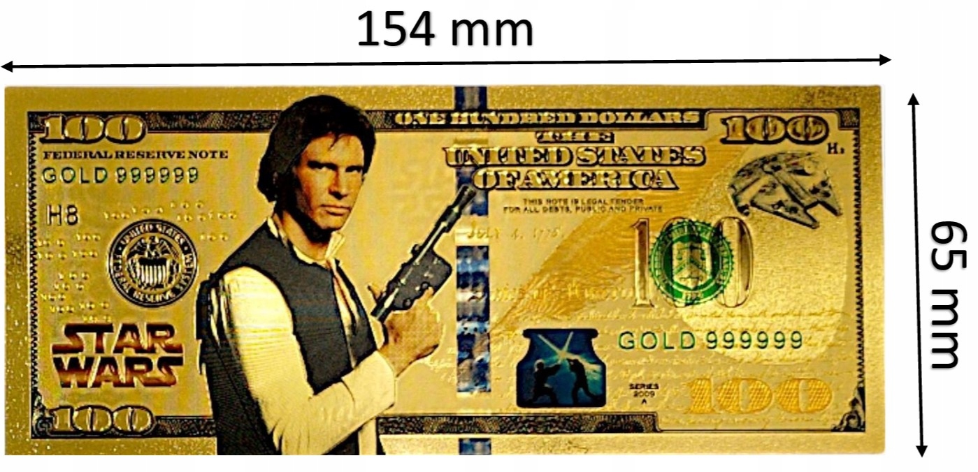 ХАН СОЛО «ЗВЕЗДНЫЕ ВОЙНЫ» Коллекционная позолоченная банкнота номиналом 100 долларов в подарок