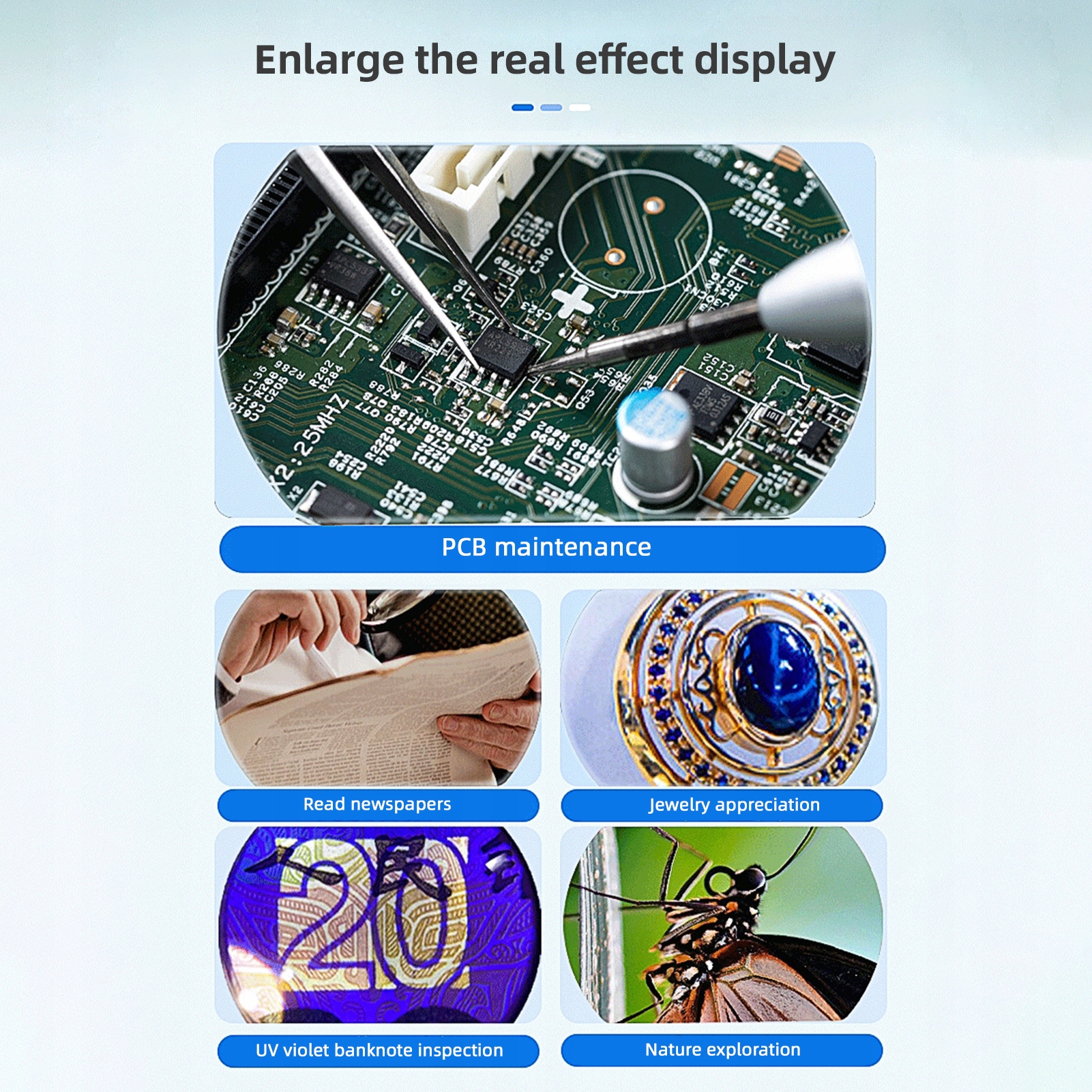 1. Ручная цифровая лупа. Эта компактная ручная цифровая лупа обеспечивает впечатляющее 100-кратное увеличение и идеально подходит для взрослых и детей, которые могут начать исследовать природу и открывать для себя увлекательные микроскопические миры где угодно.
